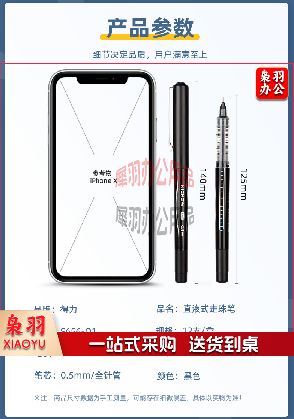 得力S656-Q1直液式走珠笔0.5mm全针管(黑)(支)