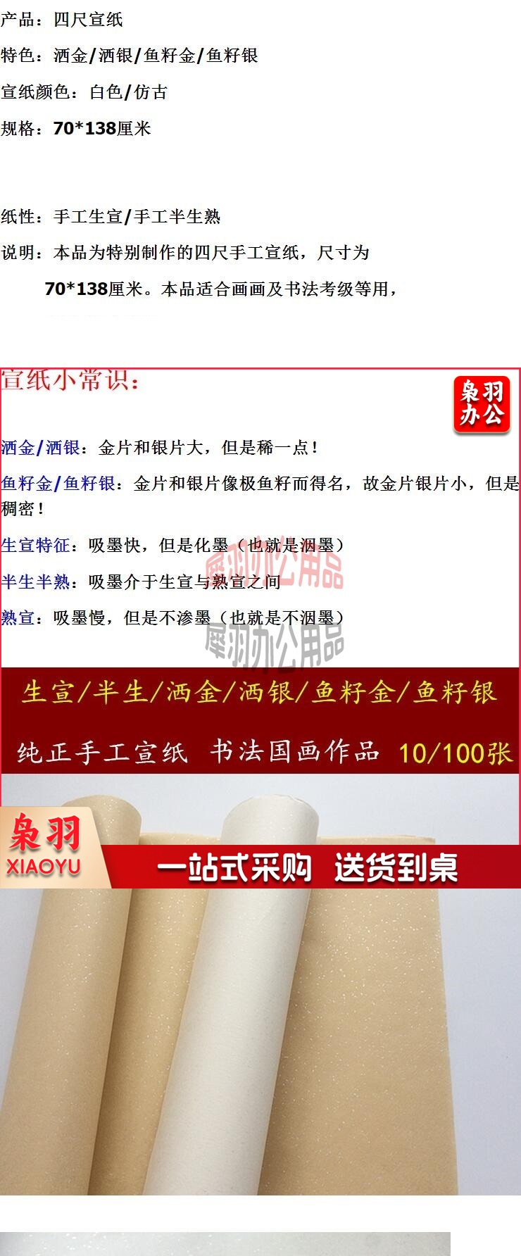 手工四尺半生熟宣纸 白色鱼籽银仿古宣纸 100张/刀 货号:JC