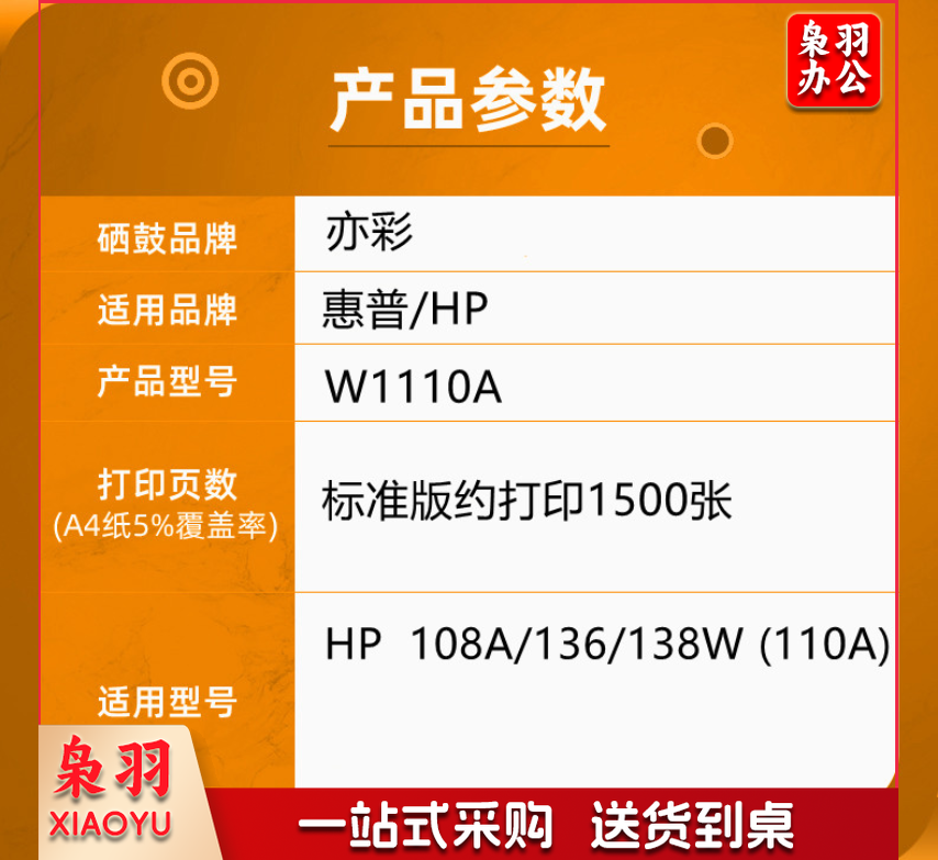 亦彩 激光打印机硒鼓W1110A 适用于HP 108A/108W/136A/136W/138PN