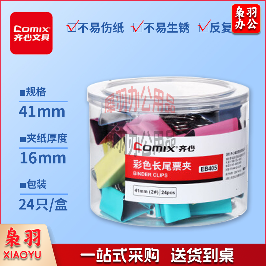 齐心(Comix)长尾夹/燕尾夹/票夹 彩色金属 2#41mm 24只 /筒 TJHX02130949024098
