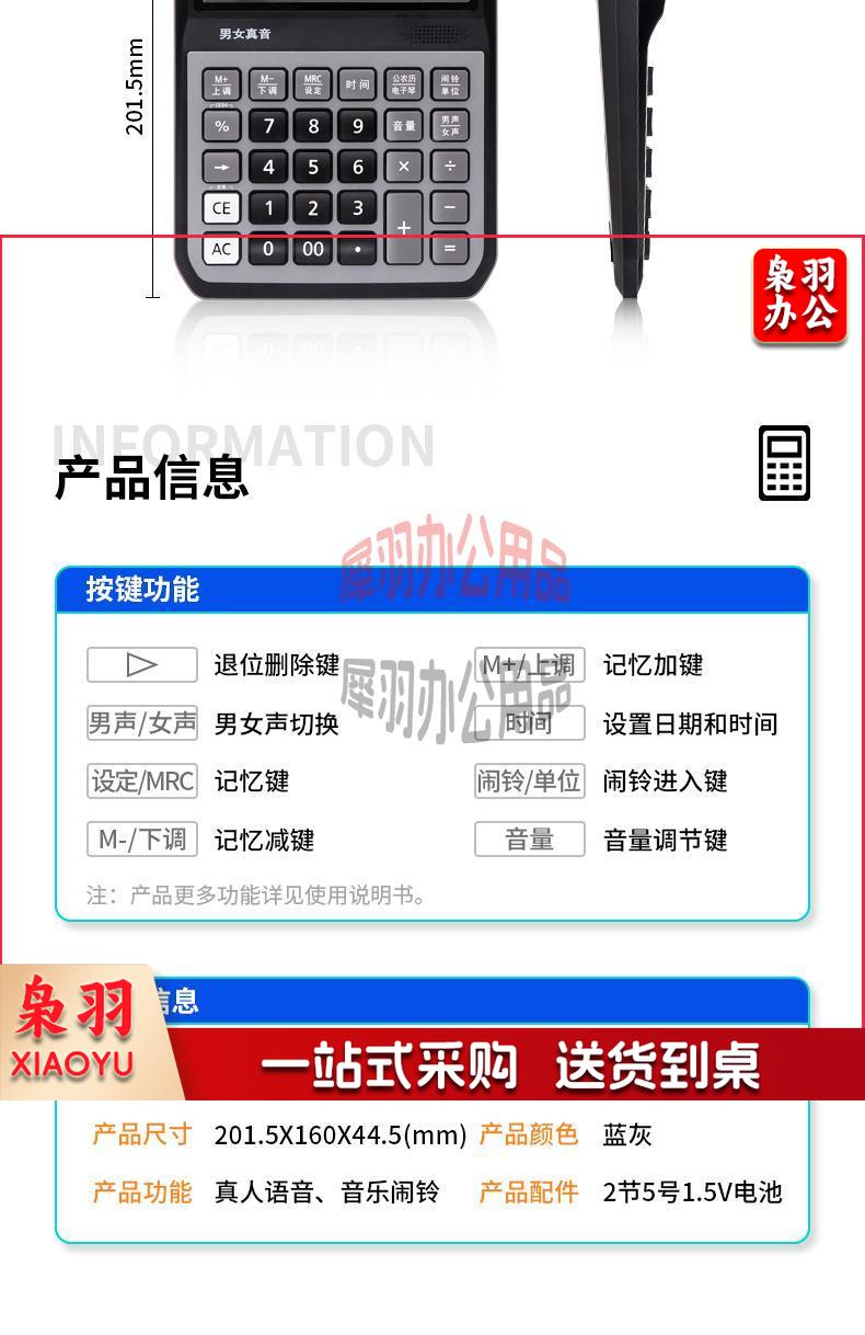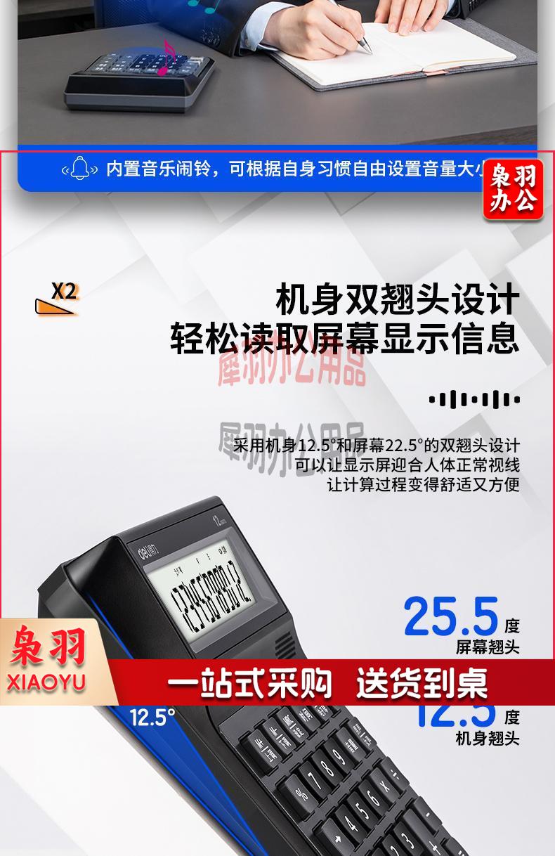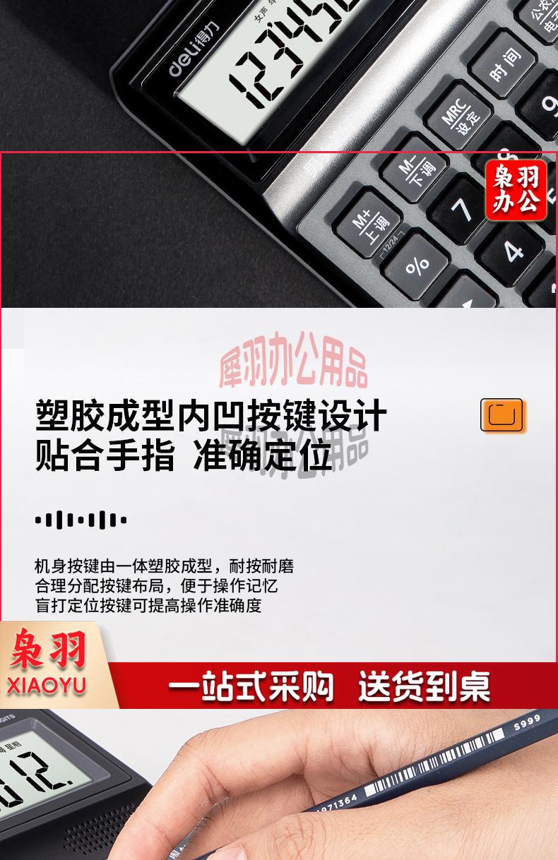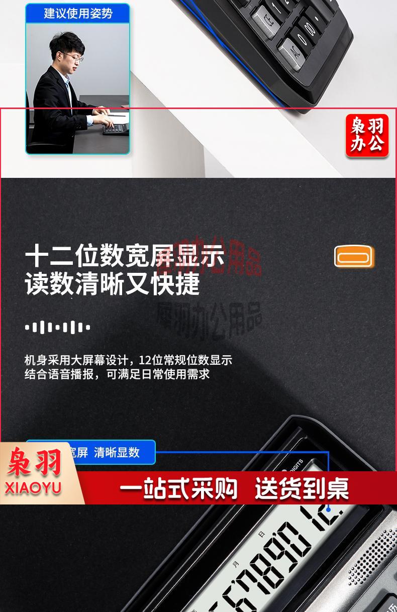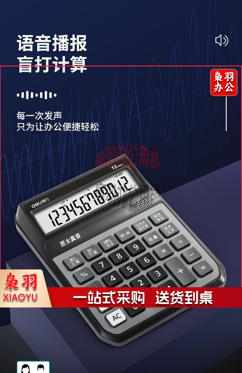得力(deli)大屏12位语音计算器计算机 男女真声切换 电子琴功能可弹音乐 办公用品 蓝灰色1555