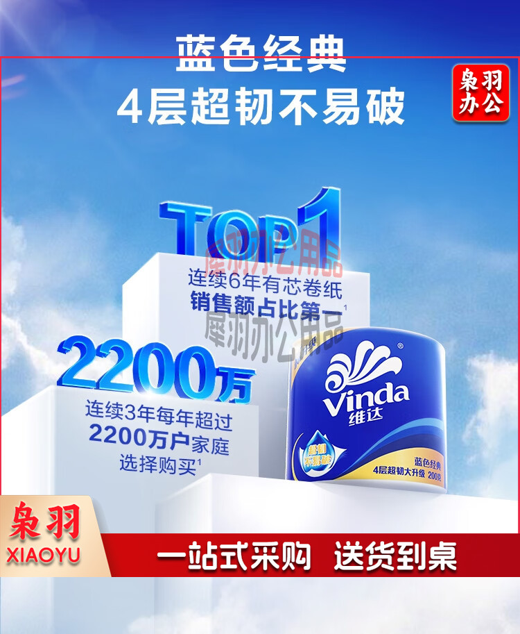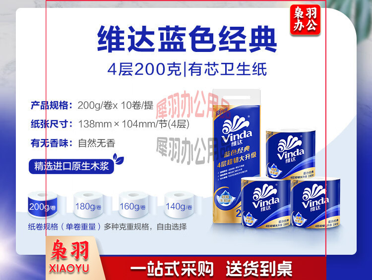 维达(Vinda)有芯卷纸 蓝色经典厚韧大分量 卫生纸厕纸 卷筒纸