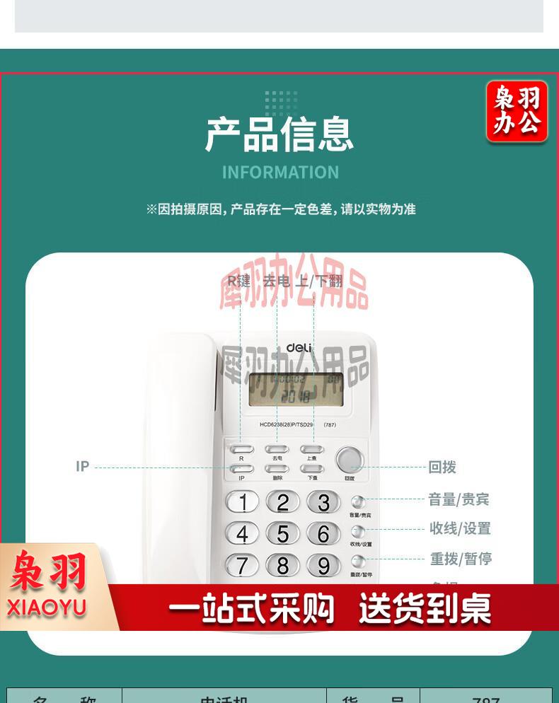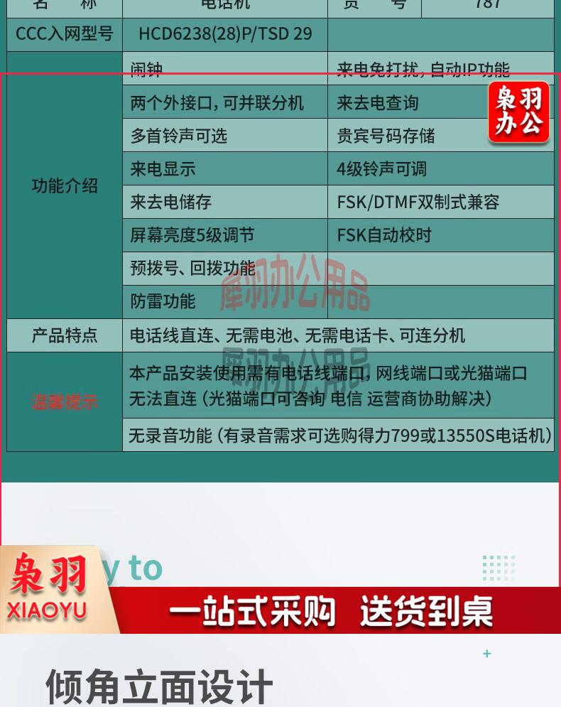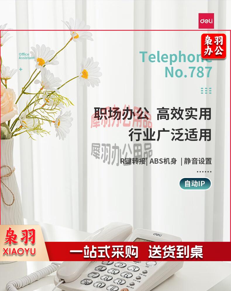 得力(deli)电话机座机 固定电话 办公家用 大容量存储 防雷、抗电磁干扰 787白 一年质保
