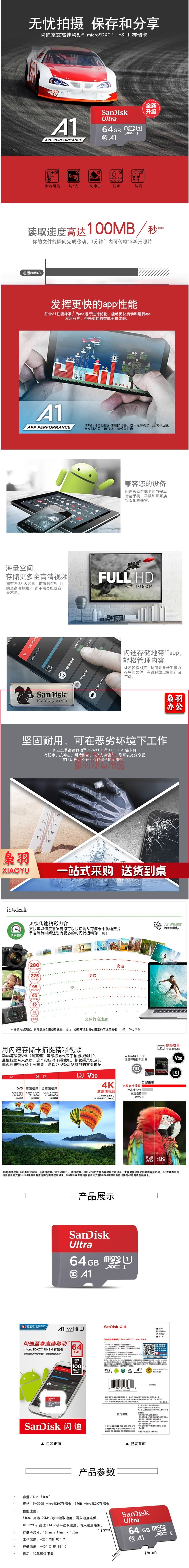 闪迪(SanDisk)64GB TF(MicroSD)存储卡 U1 C10 A1 至尊高速移动版 读速100MB/s