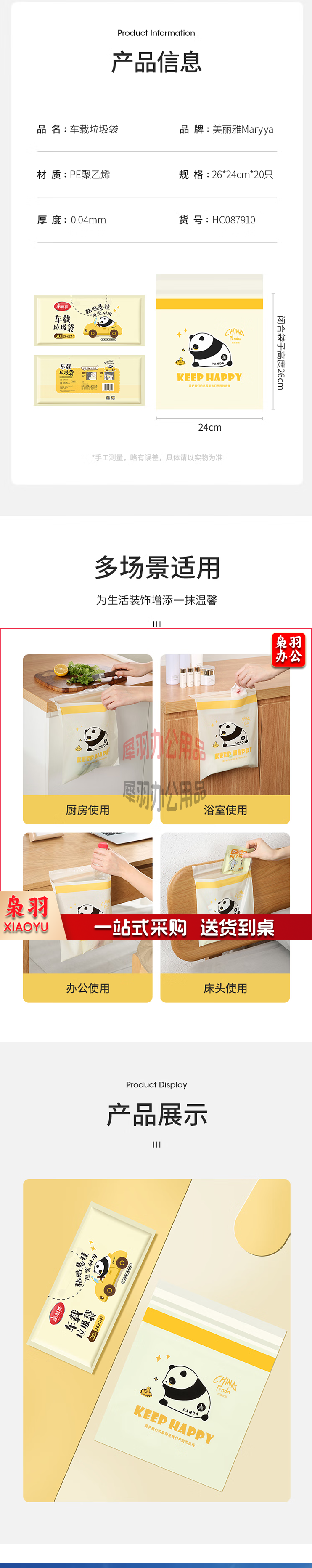 美丽雅车载垃圾袋粘贴式办公桌面清洁袋24*26cm共20只