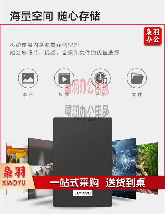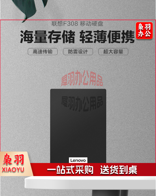 联想(Lenovo)F308 移动硬盘 2TB 移动硬盘 USB3.0 2.5英寸 商务黑 高速传输 稳定耐用