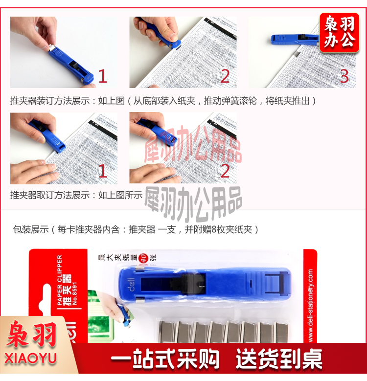 得力 8592 金属推夹器 夹纸器 装 订补充夹 订书文件夹子 补充夹子