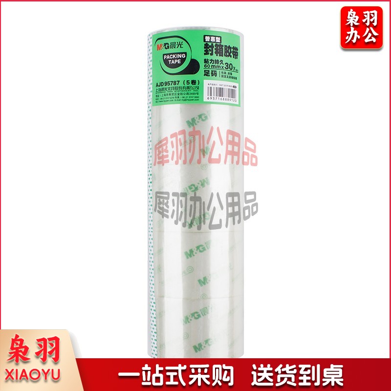 晨光AJD95787 普透胶带胶布打包不易断裂封箱办公快递 60mm*30y 1筒5卷装