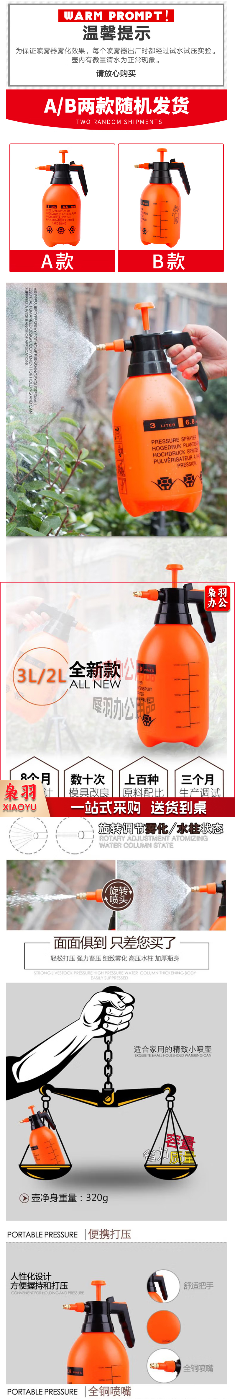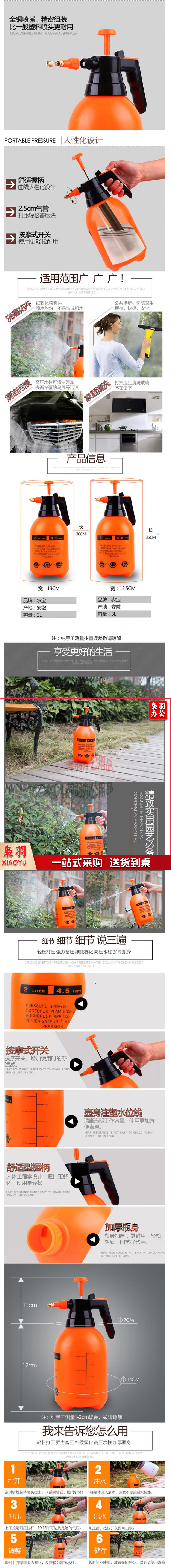 花卉植物浇水壶浇花洒水壶喷雾器园艺洗车喷壶泡沫家用喷壶小喷壶 2.0L加厚喷壶 橙色 单位:个