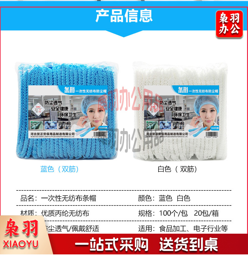 一次性头套帽子厨师工作帽防尘防污头罩车间房网帽防油烟无纺布条形帽白色