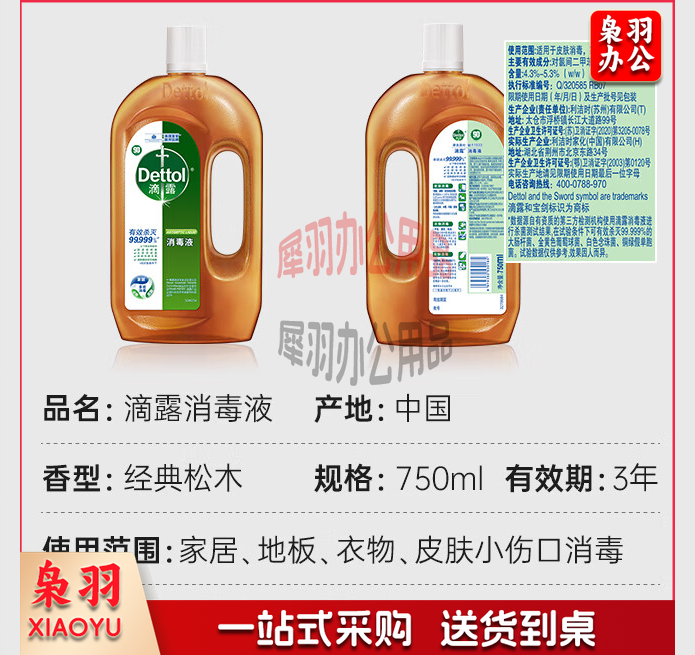 滴露(Dettol)消毒液750mL 除螨物品地板杀菌
