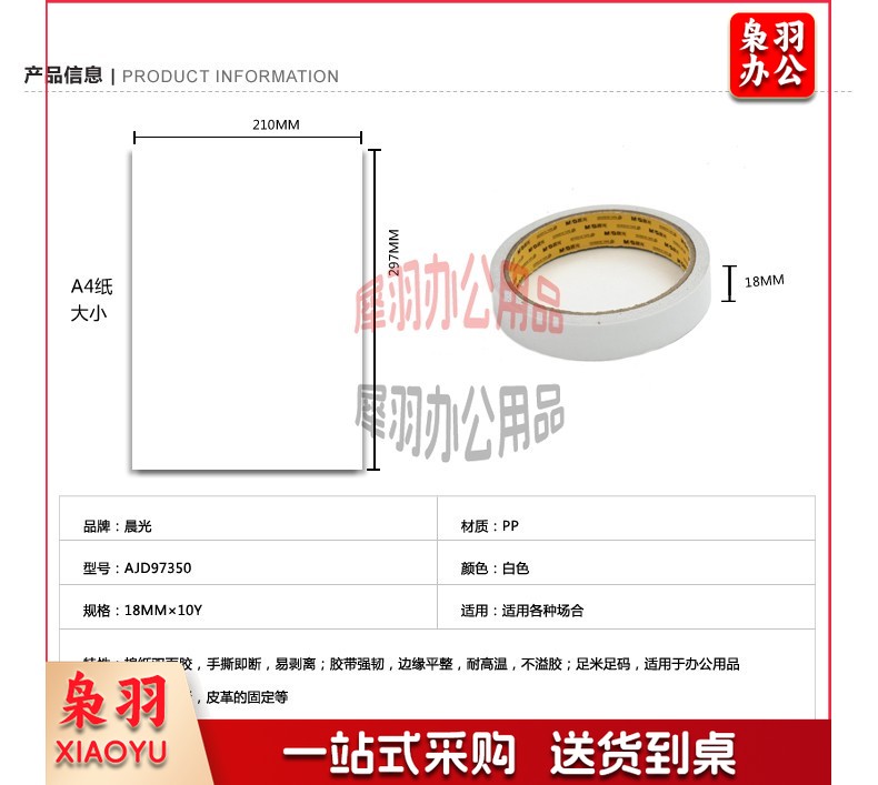 晨光双面棉纸胶带18mm*10y(单卷) ZFSD 商用 AJD97350
