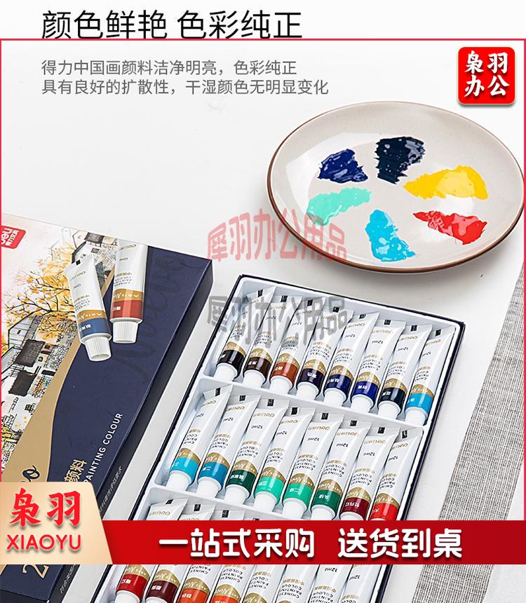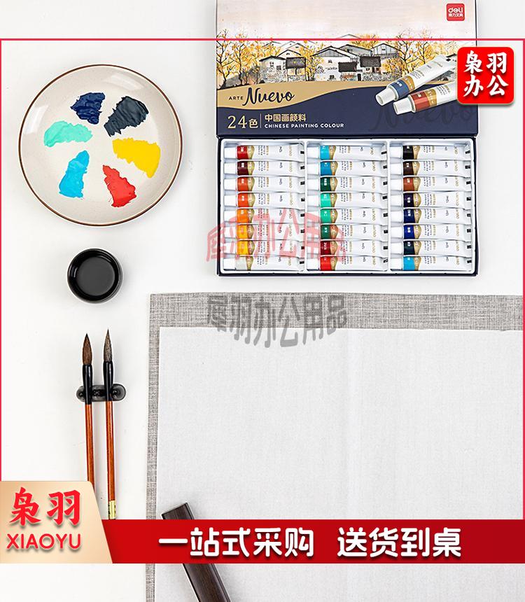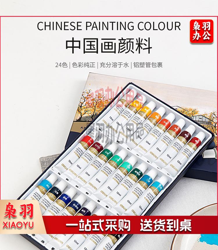 得力(deli)24色12ml中国画颜料 水墨山水画 画画 矿物文房四宝绘画色彩入门 学生儿童办公文具美术套装73887