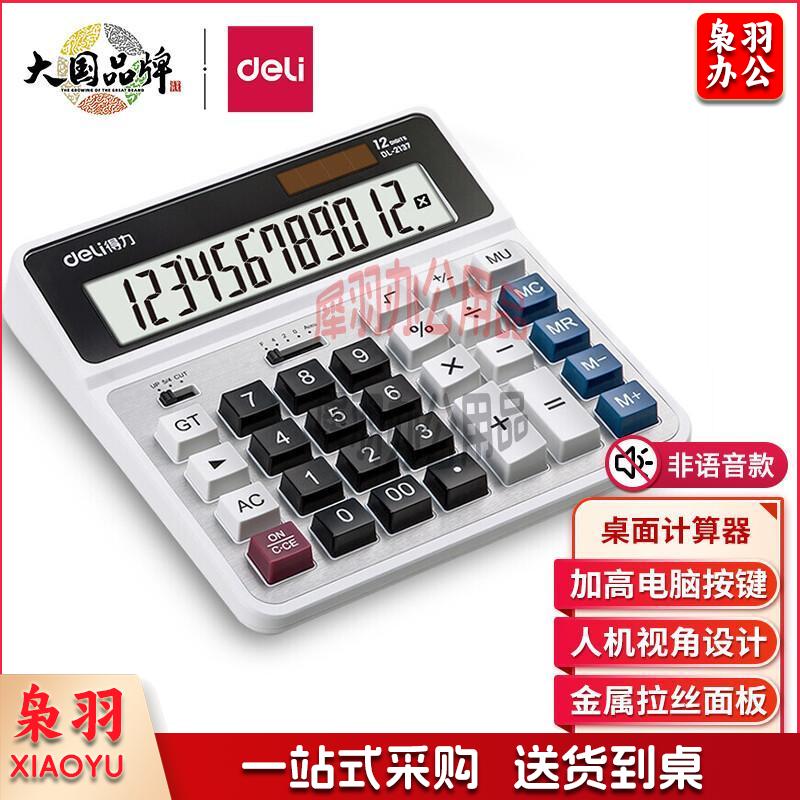 得力(deli)双电源电脑按键计算器 12位大屏横式桌面计算机 财务及银行人员适用 办公用品 白色2136