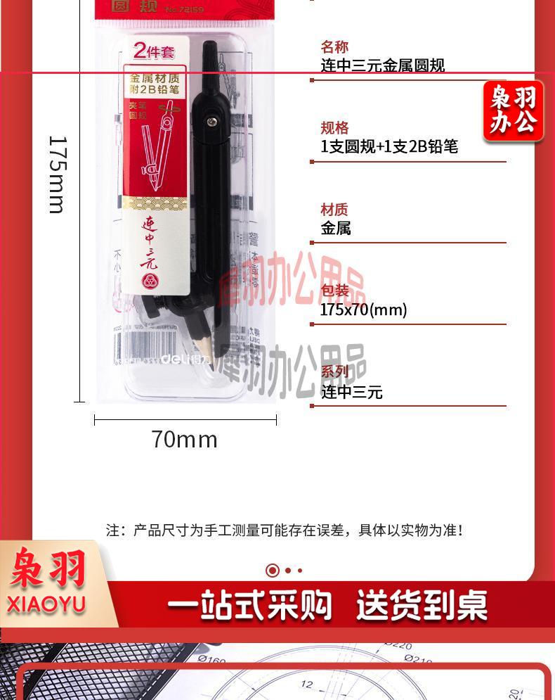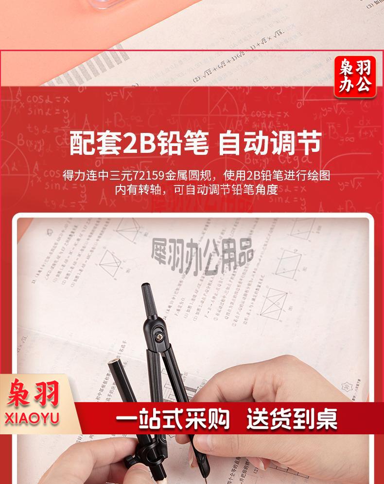 得力(deli)连中三元金属圆规套装 学生考试绘图文具 多功能办公制图工具 72159