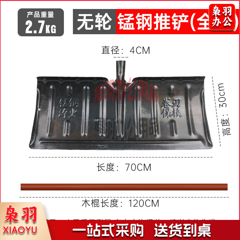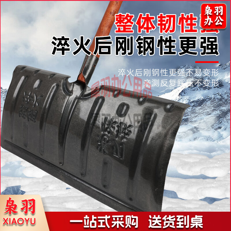 除雪铲推雪板 黑色全钢铲雪铲实木杆铲雪工具 除雪板粮食铲锰钢淬火铲头70*30cm