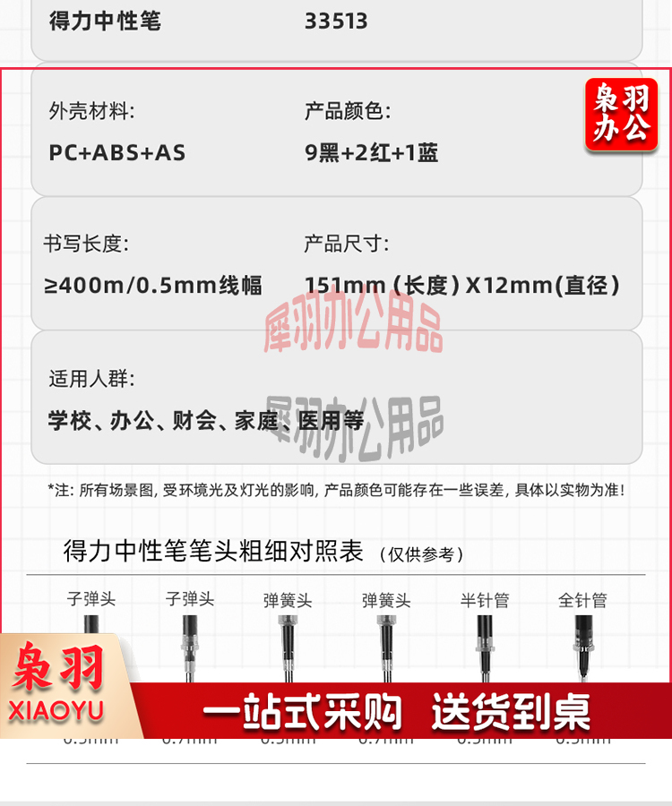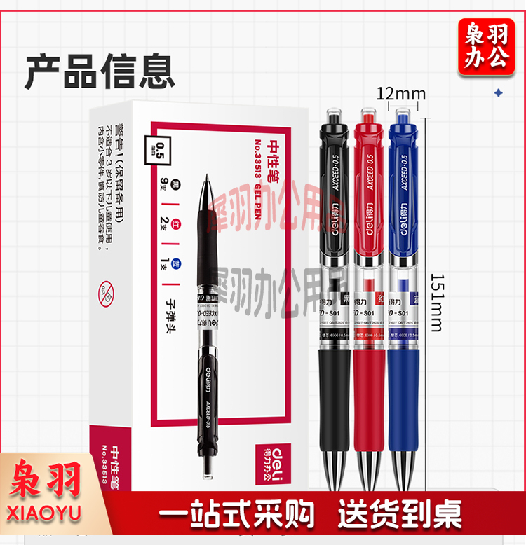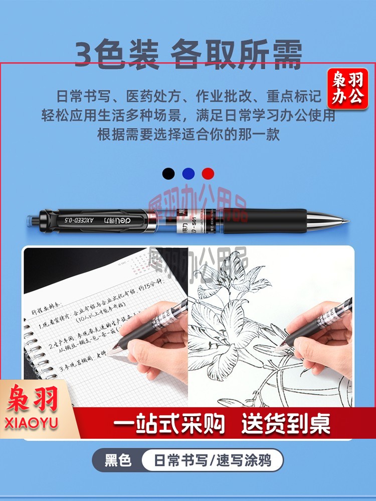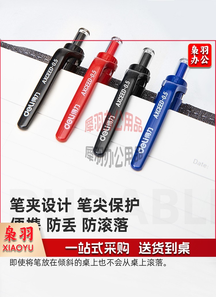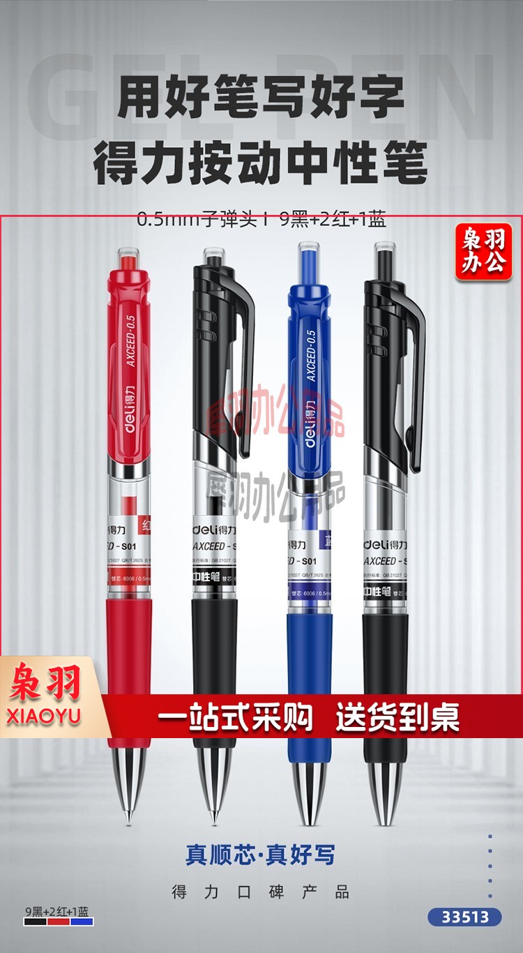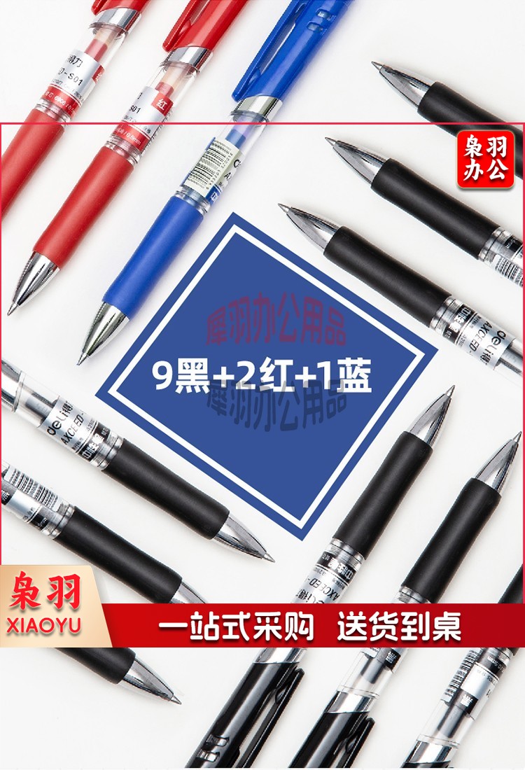 得力(deli)中性笔 0.5mm子弹头经典办公签字笔 水笔按动笔 9黑2红1蓝