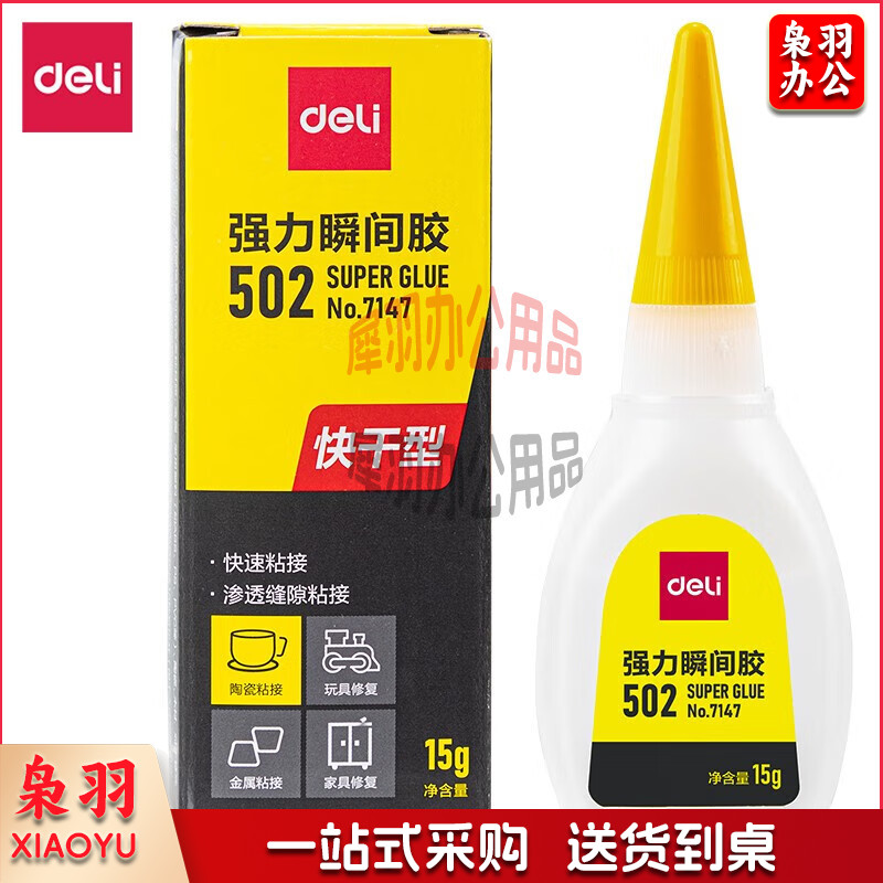 得力(deli)502强力胶水万能胶粘鞋防水专用胶木工木头塑料高粘度超强力速干7147【大容量款】502胶水15g-1支