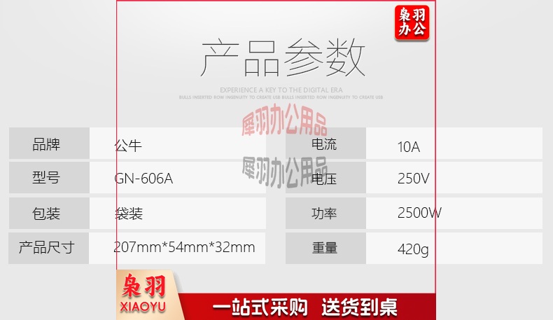 公牛(BULL)/插线板/插排/接线板GN-606A 1.8米