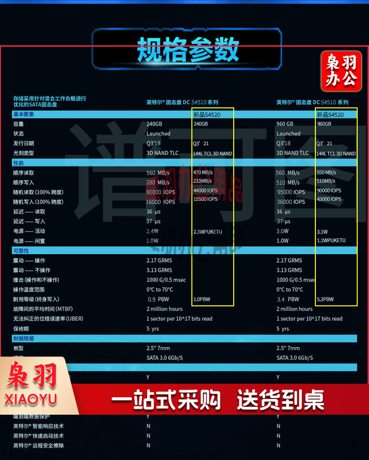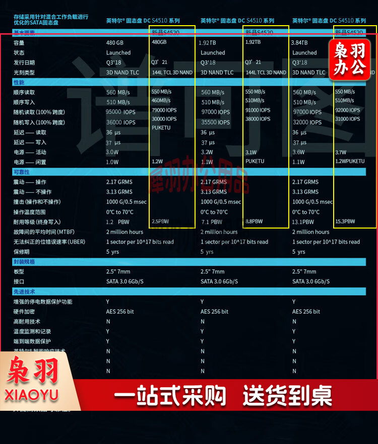 英特尔(Intel)S4520 1.92T 数据中心企业级固态硬盘SATA3接口