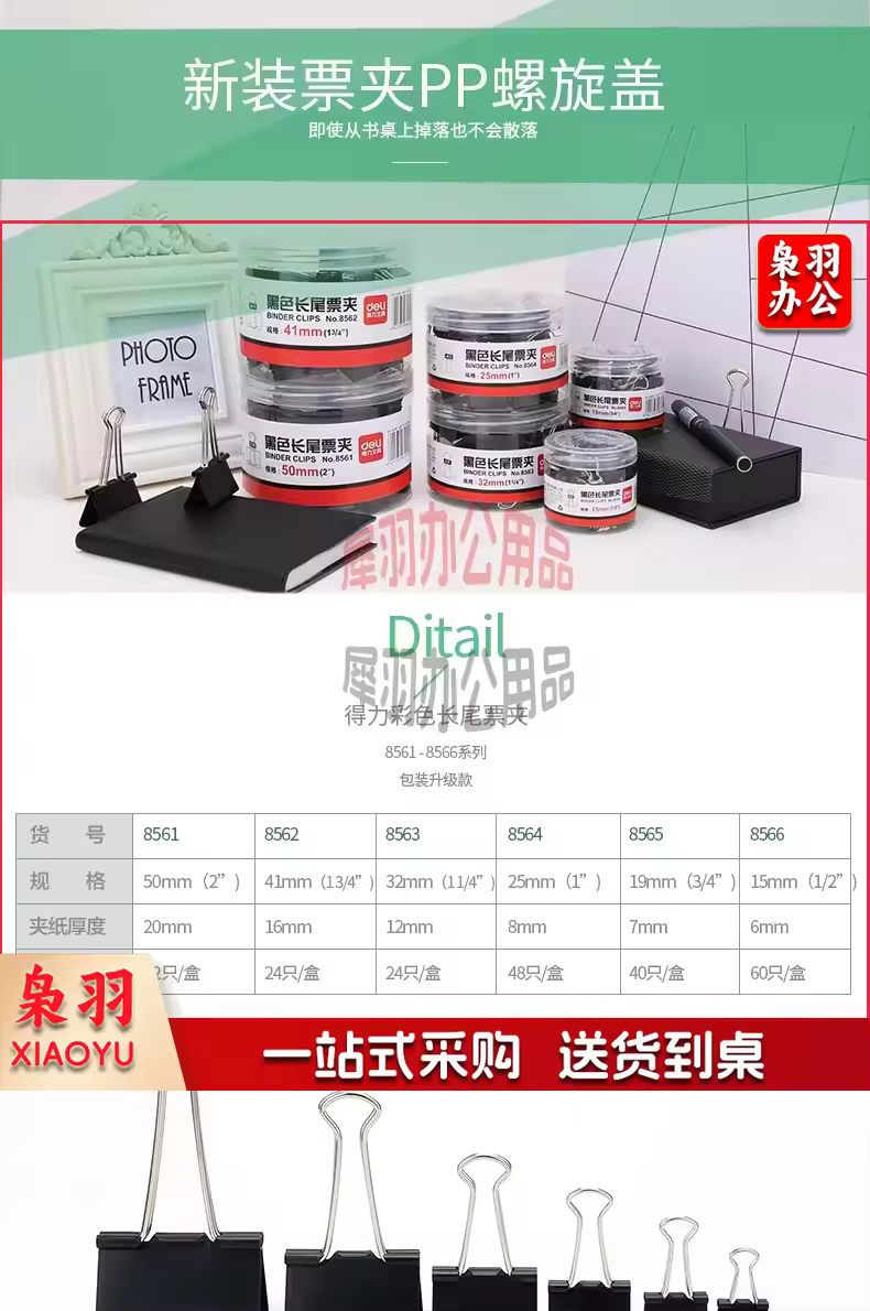 得力(deli) 黑色长尾票夹/鱼尾夹/资料试卷夹/夹子 15mm 60只/筒 单筒装 8566