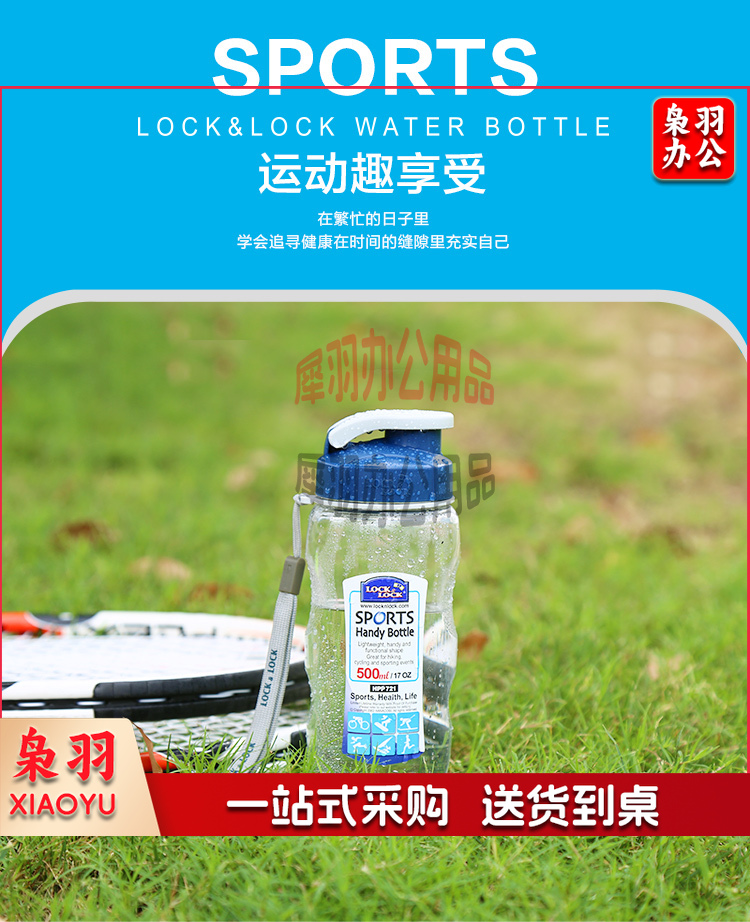 乐扣乐扣(LOCK&LOCK)便携式提绳防漏塑料运动水杯手提式塑料壶 500ML透明 HPP721