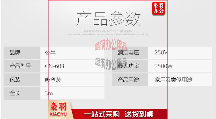 公牛(BULL)接线板 GN-603 3米线 插排 插座
