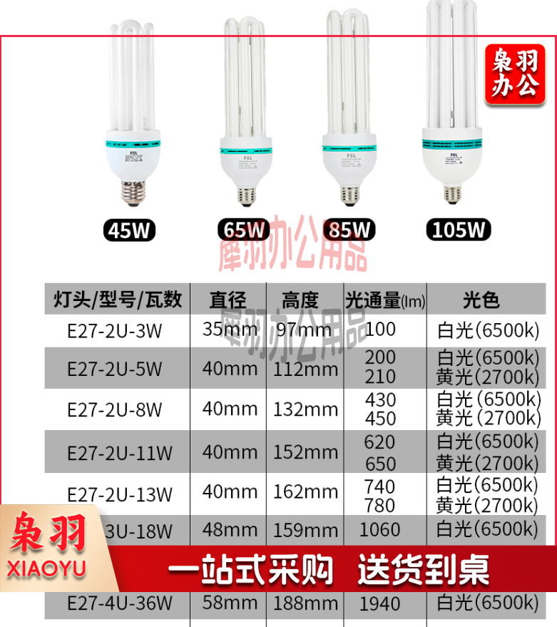 佛山 T4电子节能灯 8W(2U)E27/6500K 白光