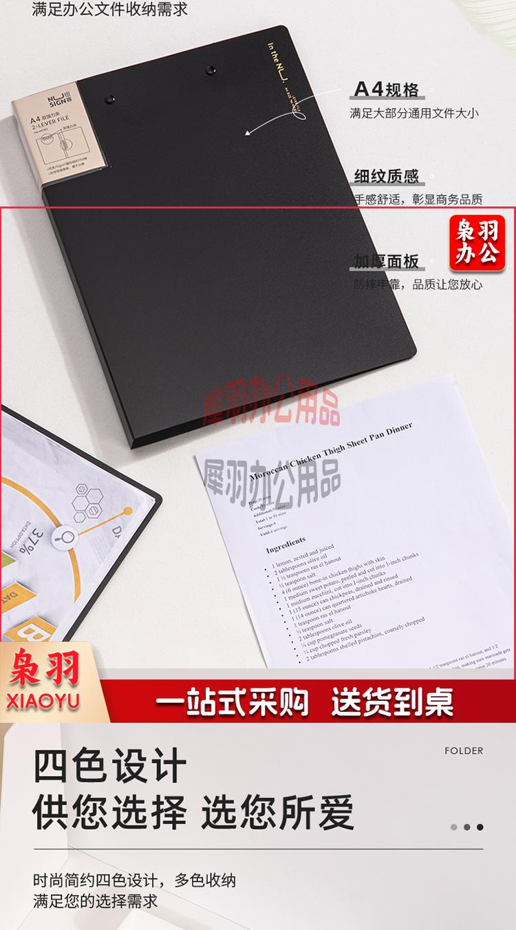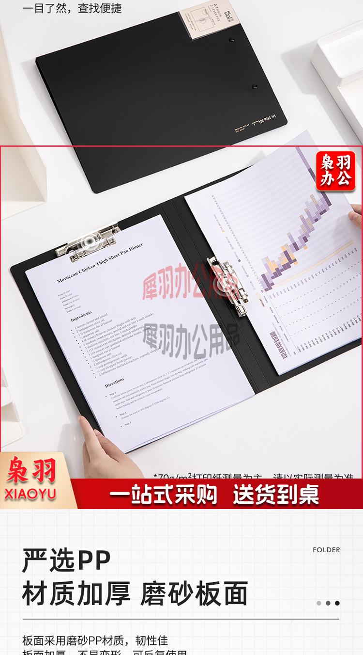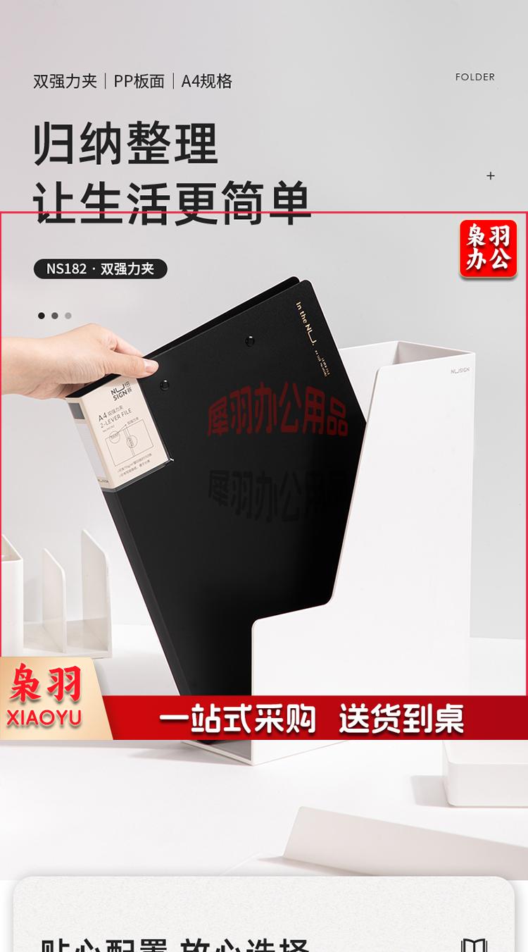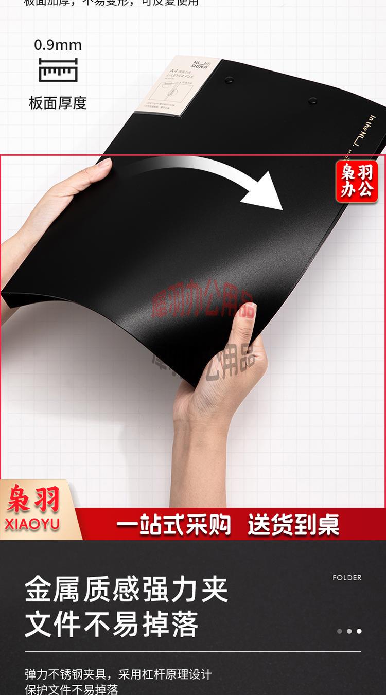 纽赛(NUSIGN)文件夹会议夹 双强力夹耐用资料报告商务办公学生试卷夹板文件收纳 曜石黑NS182