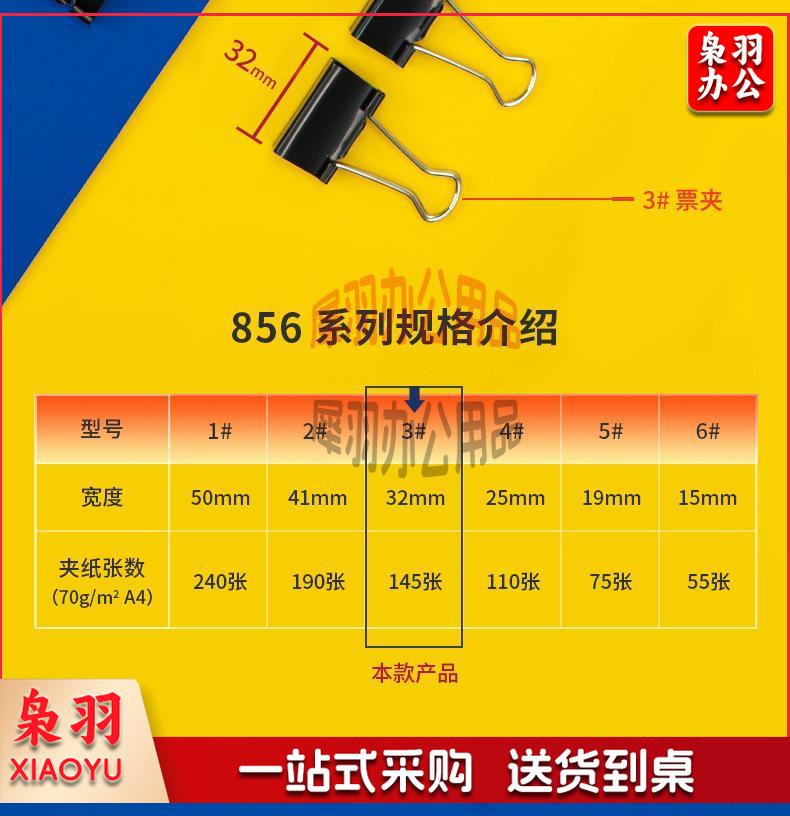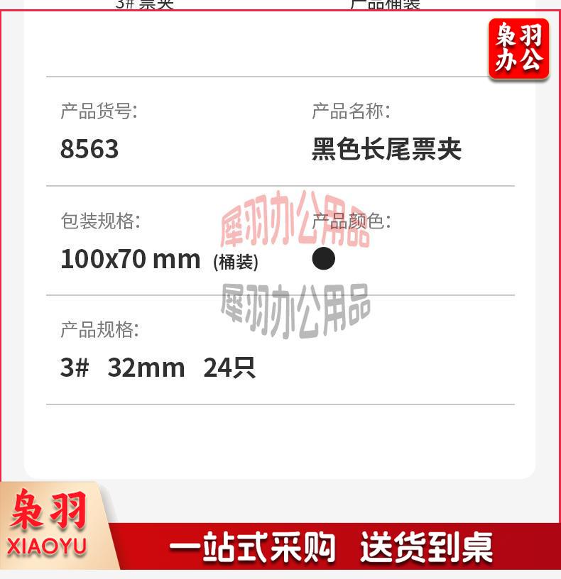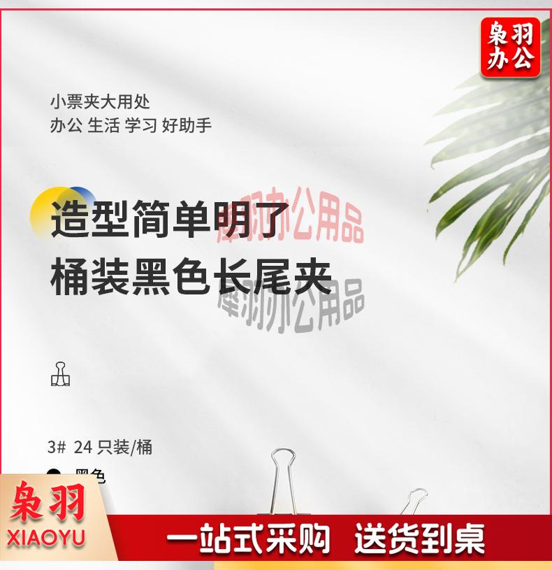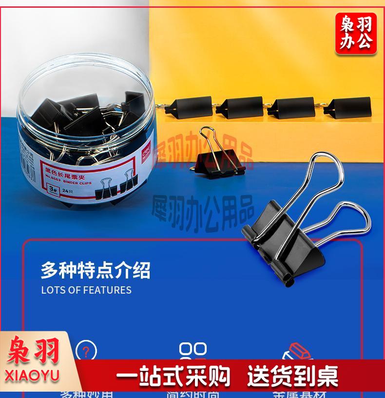 得力(deli)长尾夹票夹 金属燕尾夹票据夹子 办公用品 8563黑色【32mm】(24只/桶) *2筒