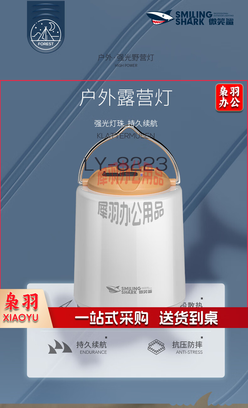 微笑鲨823B 户外露营灯 超亮营地灯 应急充电照明灯帐篷灯挂式