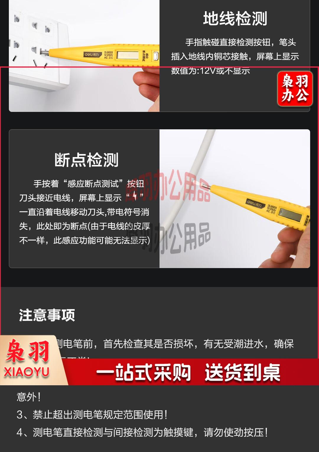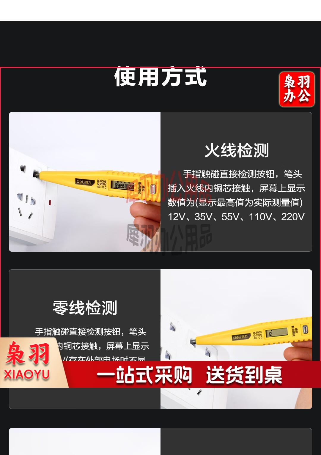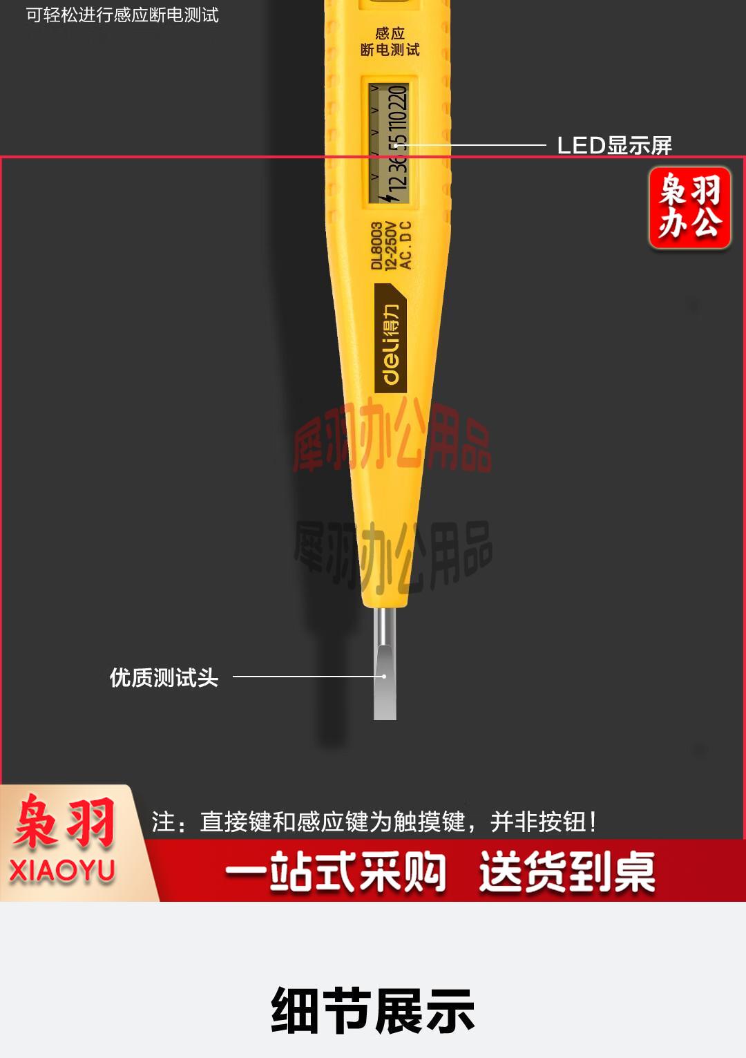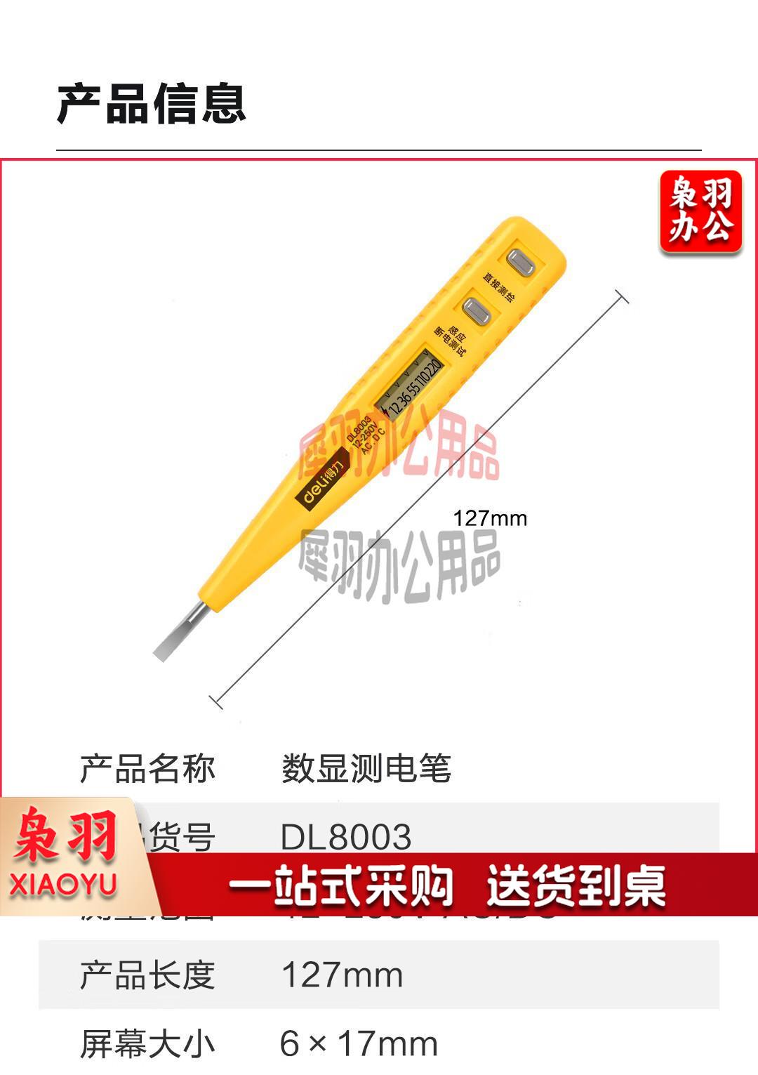 得力(deli) 数显测电笔试电笔验电笔电工笔电工螺丝刀12-250V无背光 DL8003直插数显经典款
