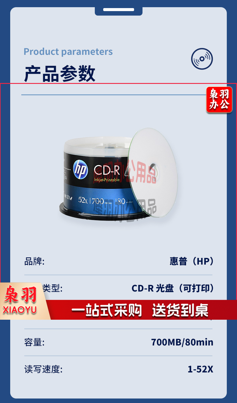 惠普(HP) CD-R可打印 光盘/刻录盘 空白光盘 52速700MB 50片装