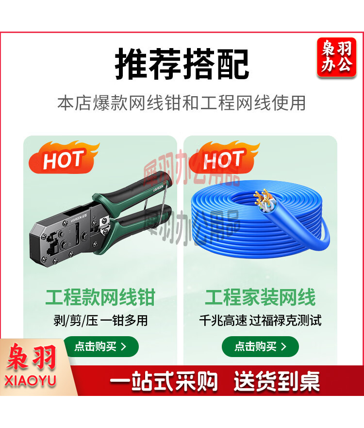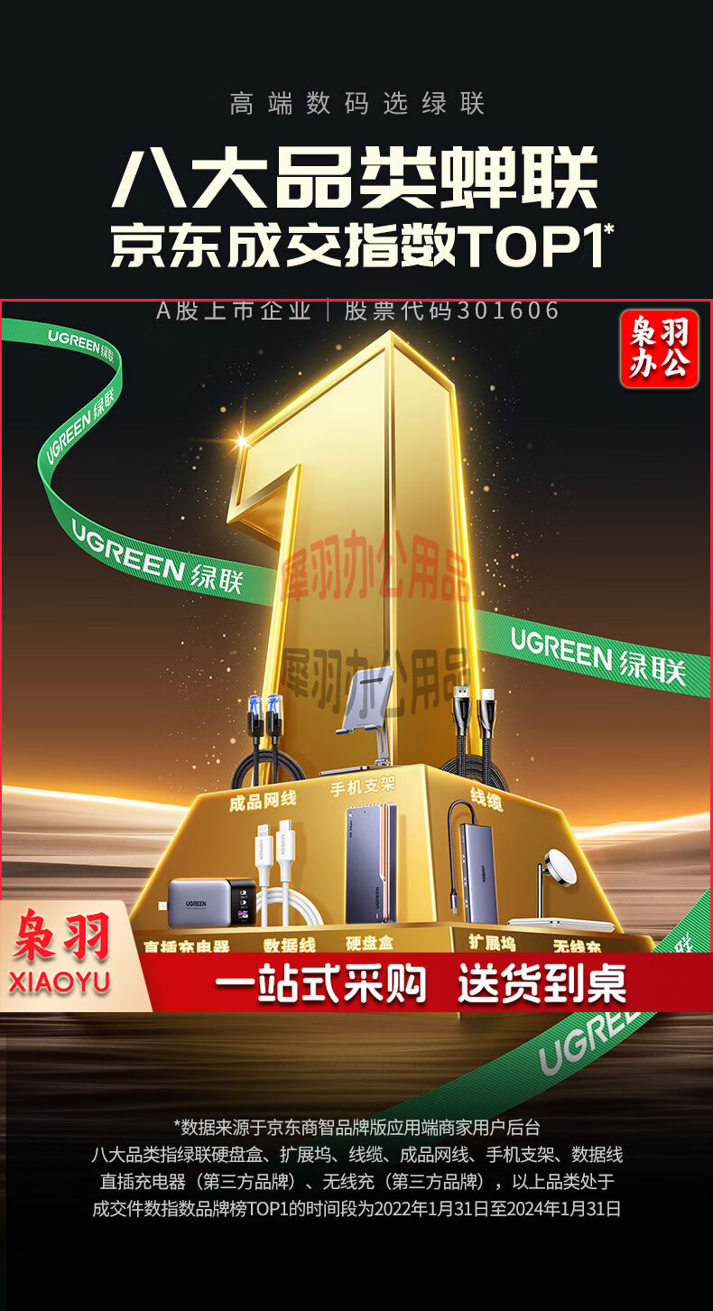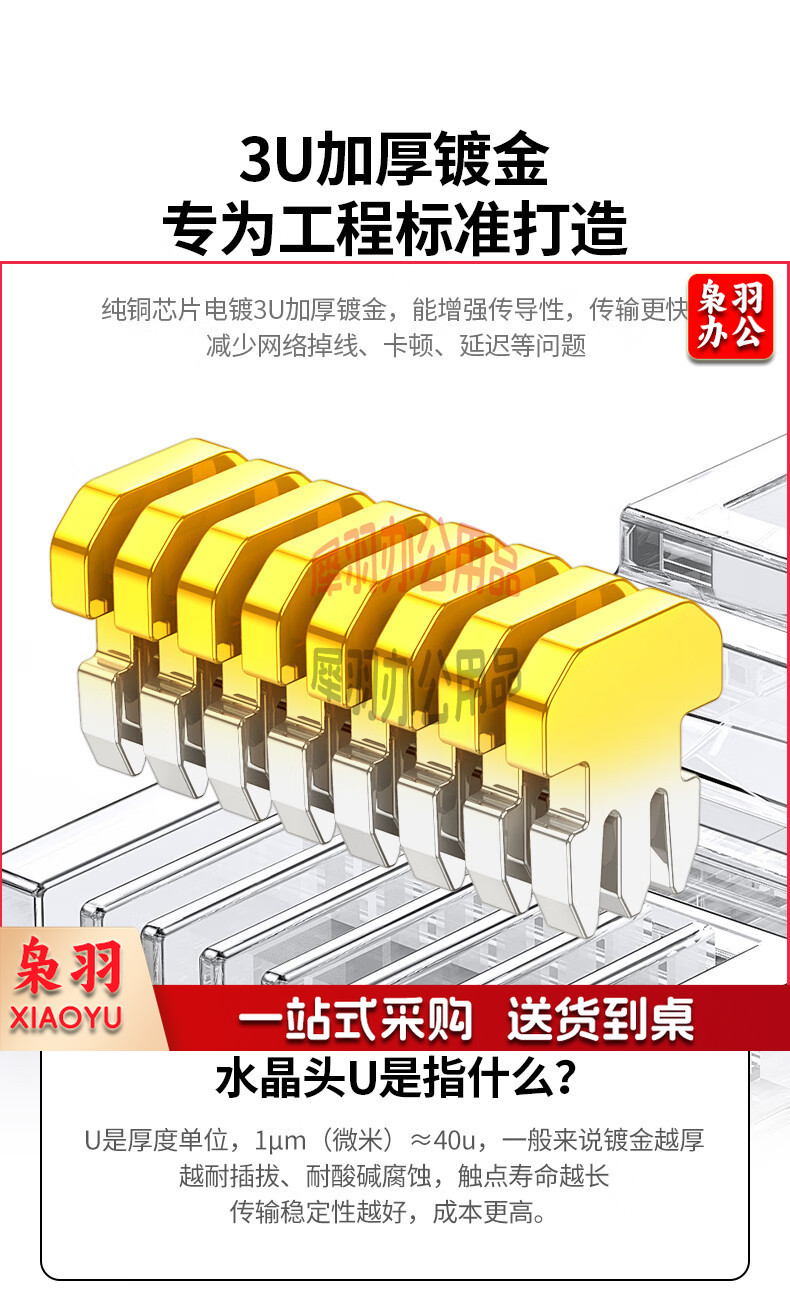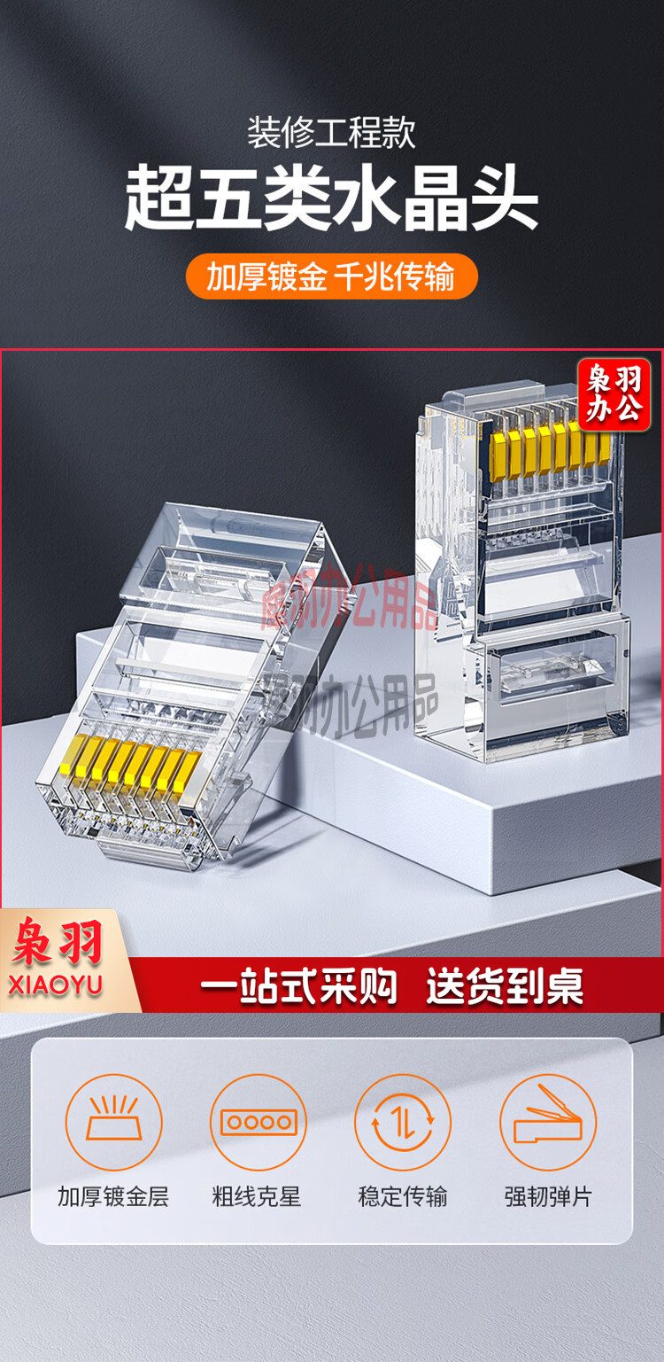 绿联(UGREEN) 超五类网线水晶头 超5类千兆网络接头 镀金工程级RJ45电脑网线连接器 CAT5E非屏蔽水晶头100个