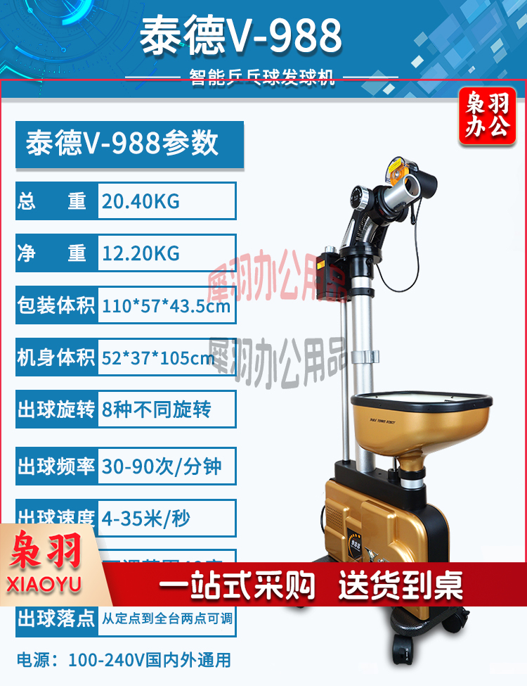 泰德 V-988发球机 泰德落地式全自动乒乓球发球机 单位:台
