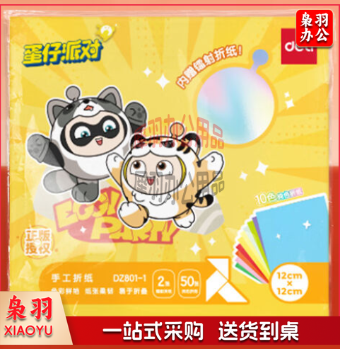 得力(deli)10色 12*12cm 蛋仔派对手工折纸 50张/袋 DZ801-1