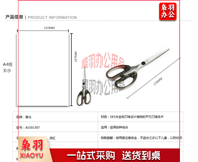 晨光(M&G)ASS91307 170mm经典办公剪刀 颜色随机