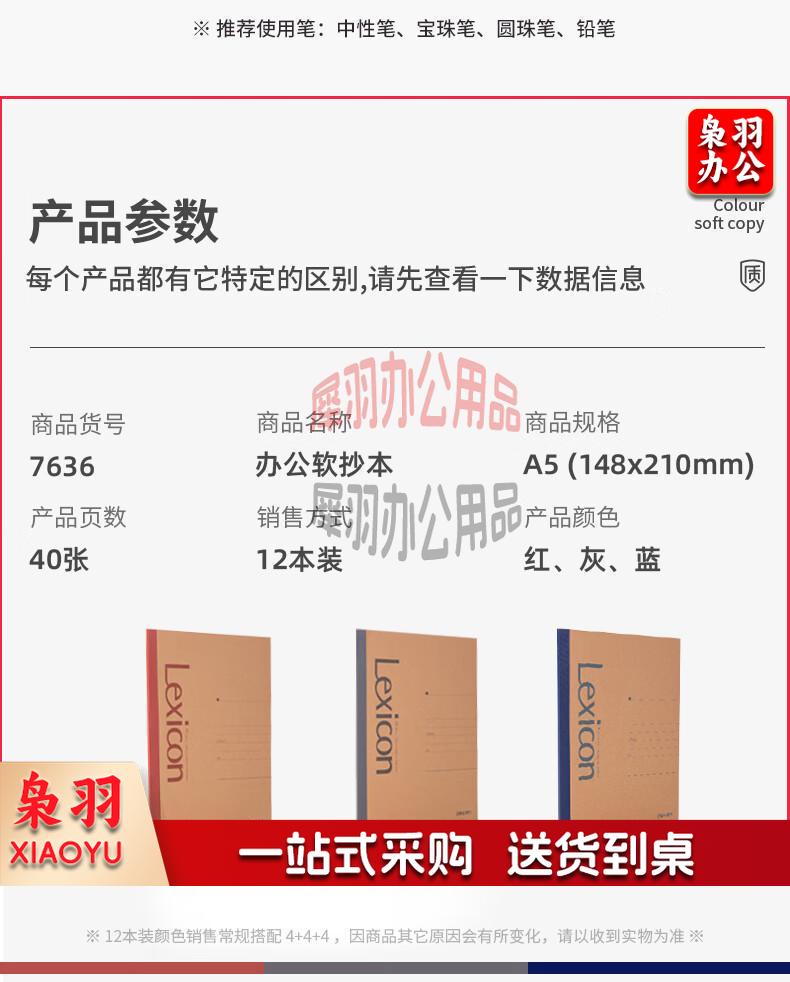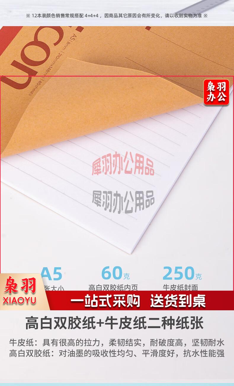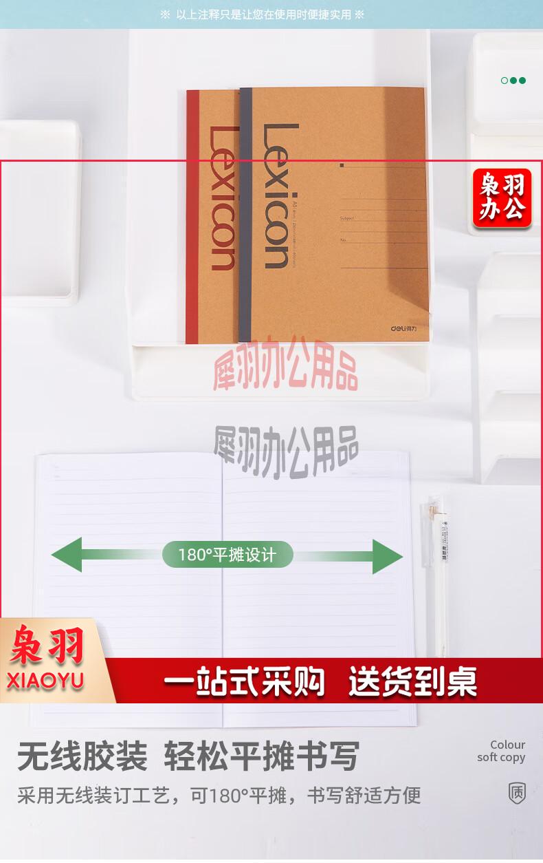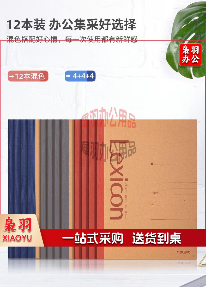 得力(deli)12本A5/40张牛皮纸无线胶装软抄本记事本 工作笔记本子文具办公用品 7636