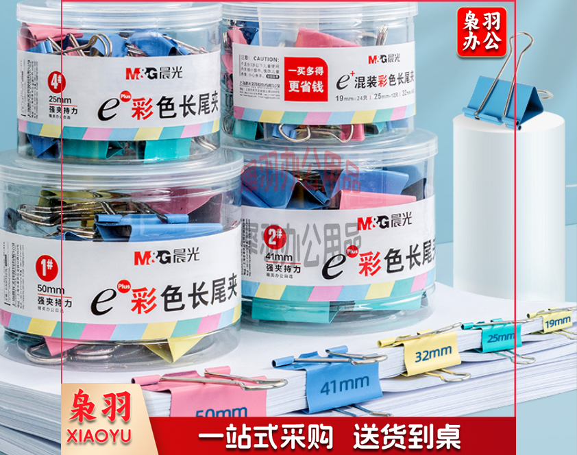 晨光(M&G)Eplus系列32mm彩色长尾夹燕尾夹票据夹 24只/罐ABS92740