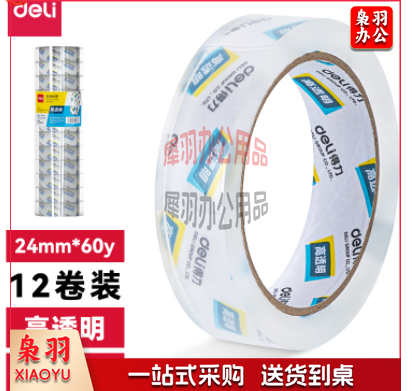 得力30133封箱胶带24mm*60y*50um(12卷/筒) 1卷价