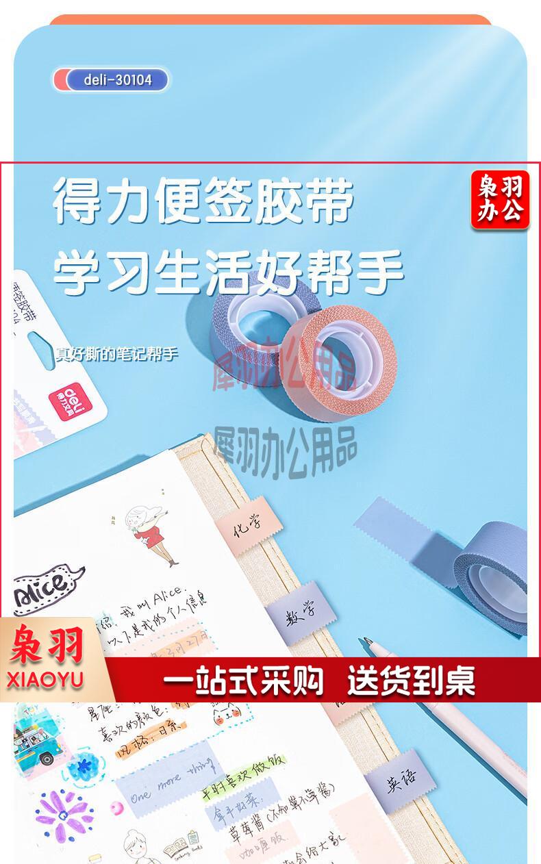 得力(deli) 简约便利贴便签纸 胶带纸 记事贴/自粘留言本 办公用品18mm*15y*70μm 2卷 30104