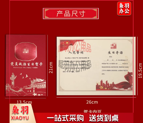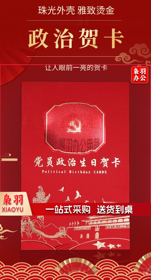 党员政治生日贺卡 中国风党员政治生日贺卡高档烫金入党周年党龄感恩祝福卡10张起售