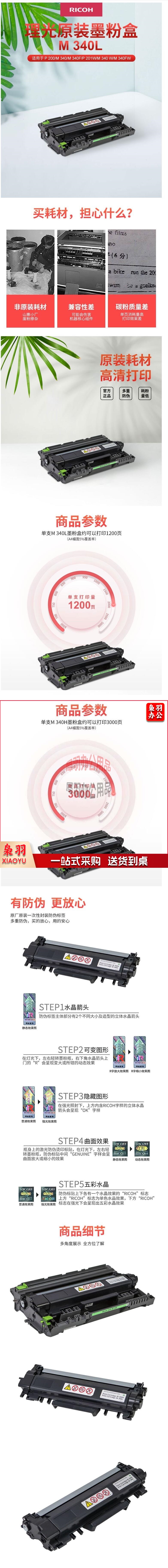 理光(Ricoh)M 340L 粉盒 墨粉 碳粉 适用理光P 200 W 和 M 340F W M (1200页)
