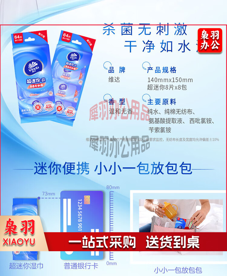 维达(Vinda)湿巾 迷你小包湿巾纸8片/包*8包装