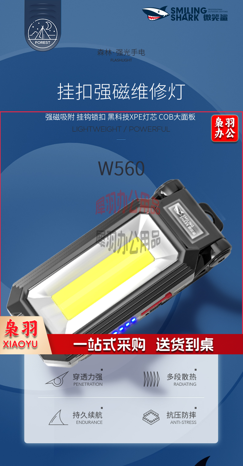 微笑鲨w560 工作灯汽修应急维修灯led超亮强光手电筒磁铁充电折叠多功能户外露营野营灯