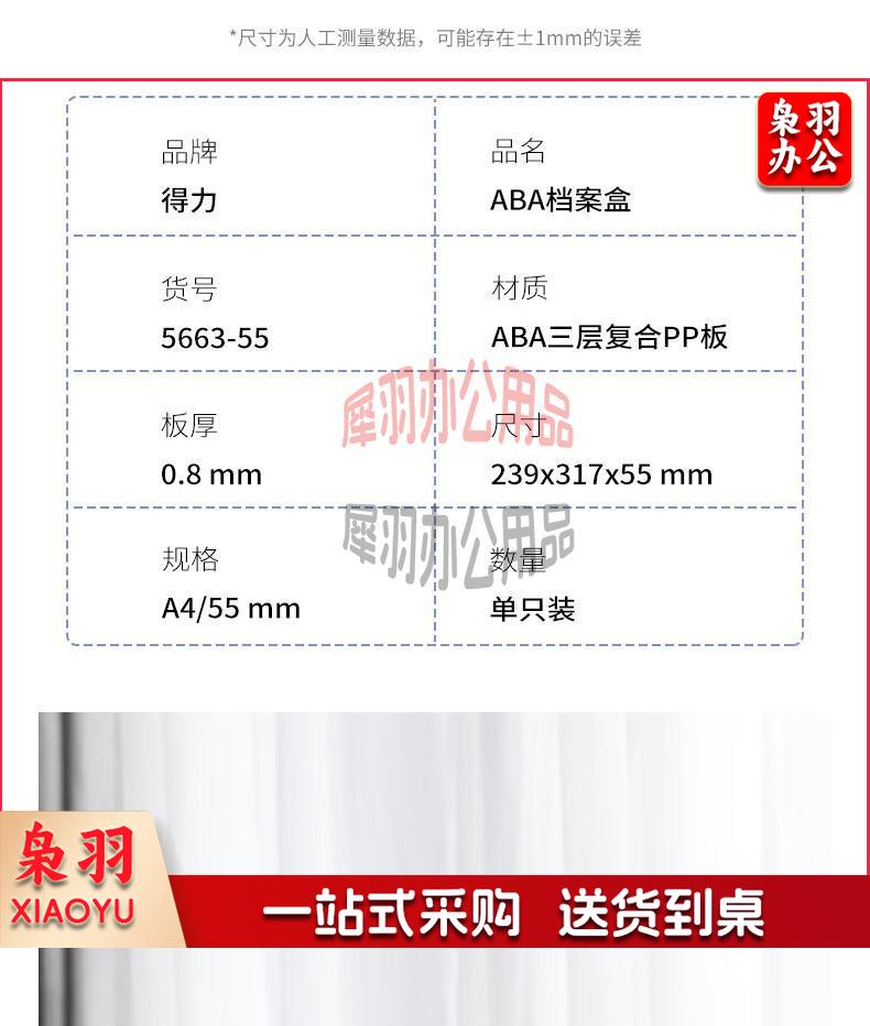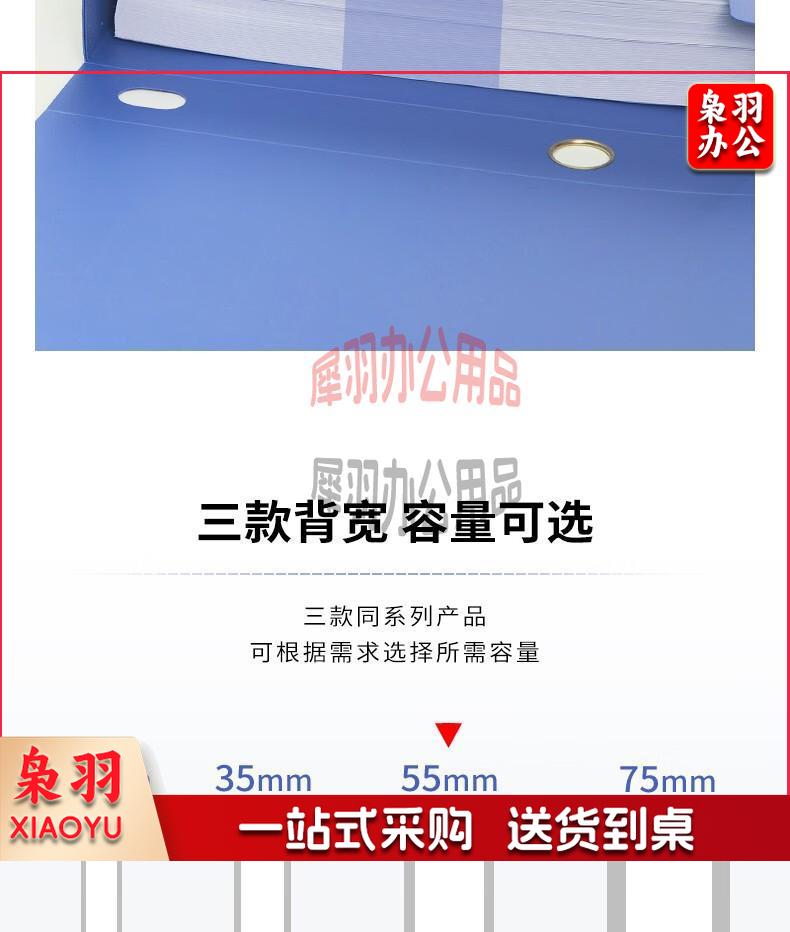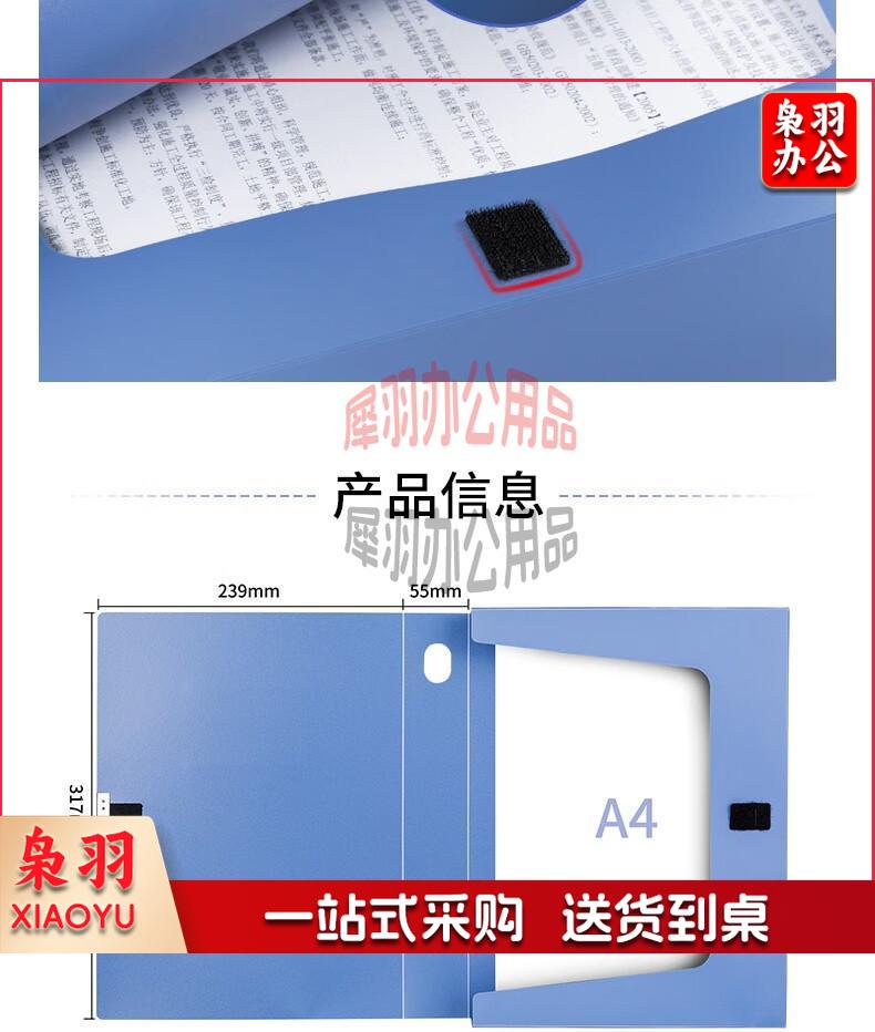 得力(deli)档案盒文件夹文件盒粘扣加厚塑料资料盒收纳袋资料册办公用收纳 基础款75mm 蓝色