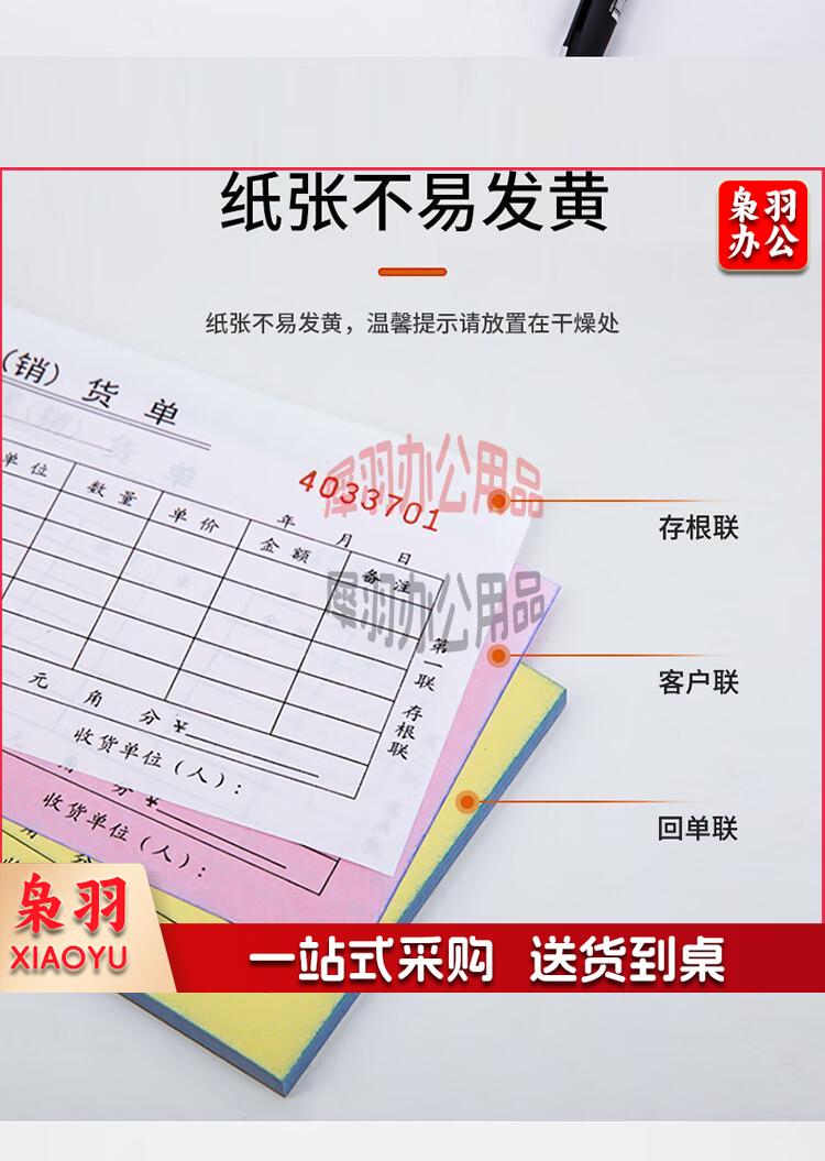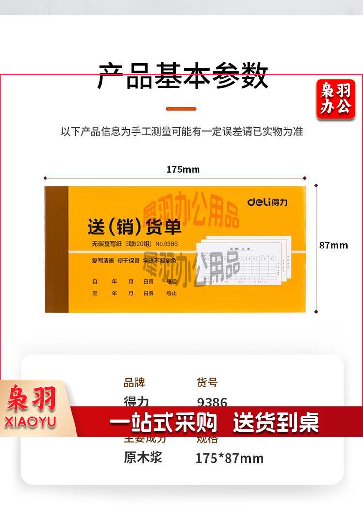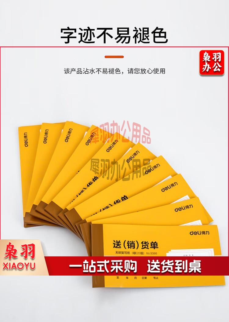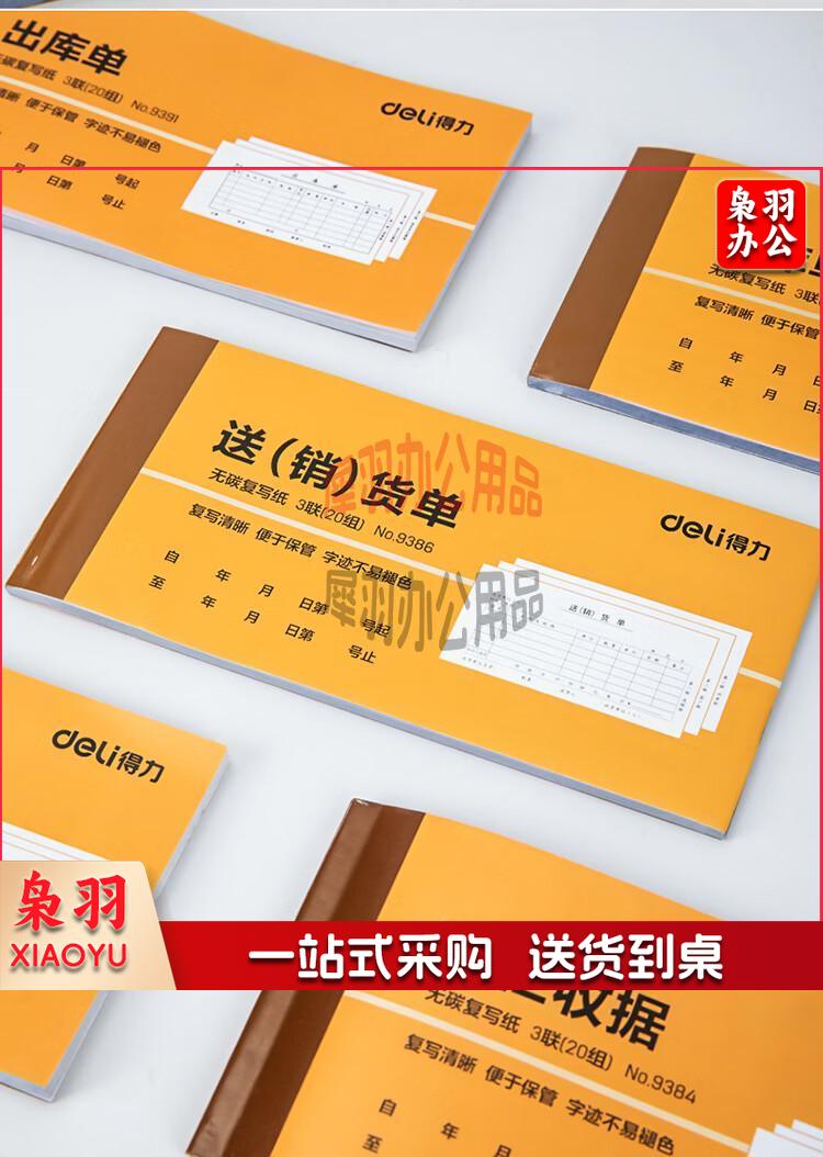 得力(deli)9386 无碳复写三联送(销)货单据 财务手写收据单 财务用品 办公用品 10本