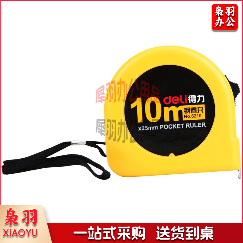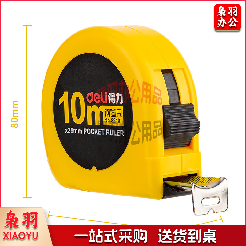 得力(deli)10m锁定功能钢卷尺 木工尺装修测量尺子 办公用品 8210 黄