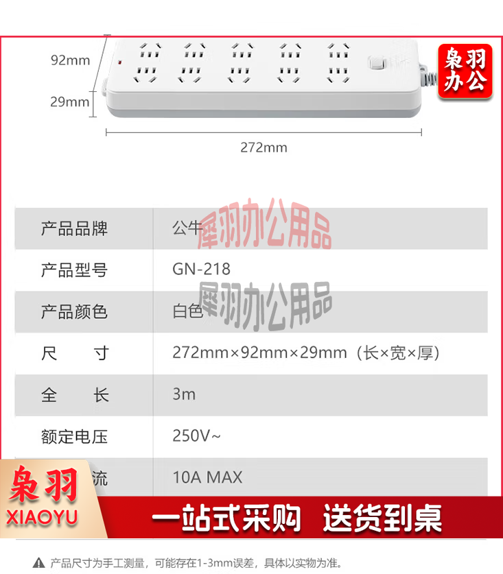公牛(BULL)10A 250V GN-218 10米 插座接线板插排安全带过载保护插排