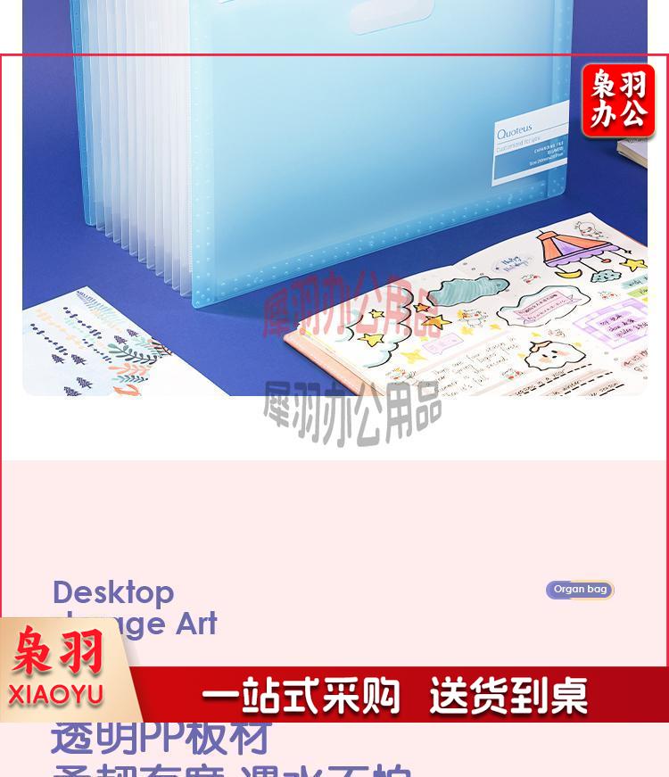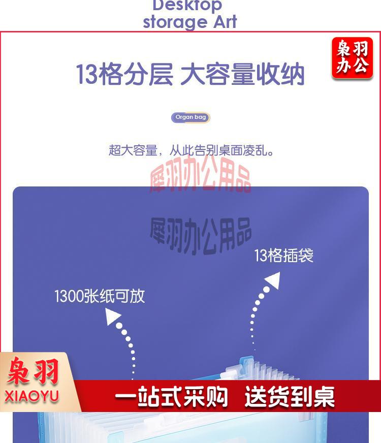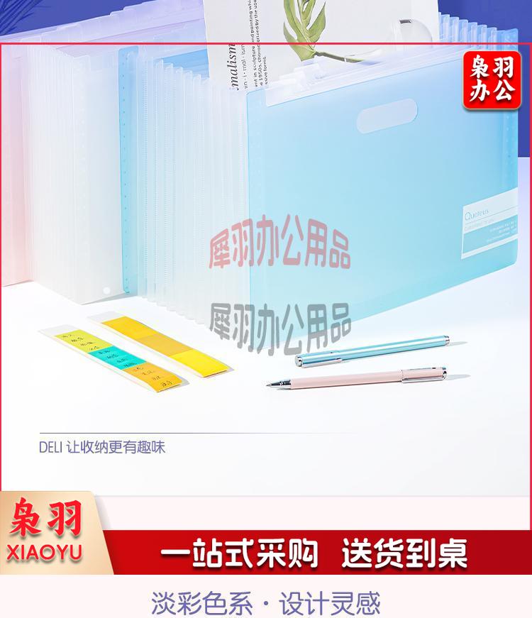 得力(deli)13格A 4竖款可立式风琴包多层文件夹 试卷收纳袋补习包 文件保护 72510 蓝色
